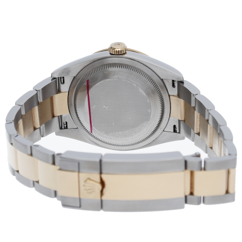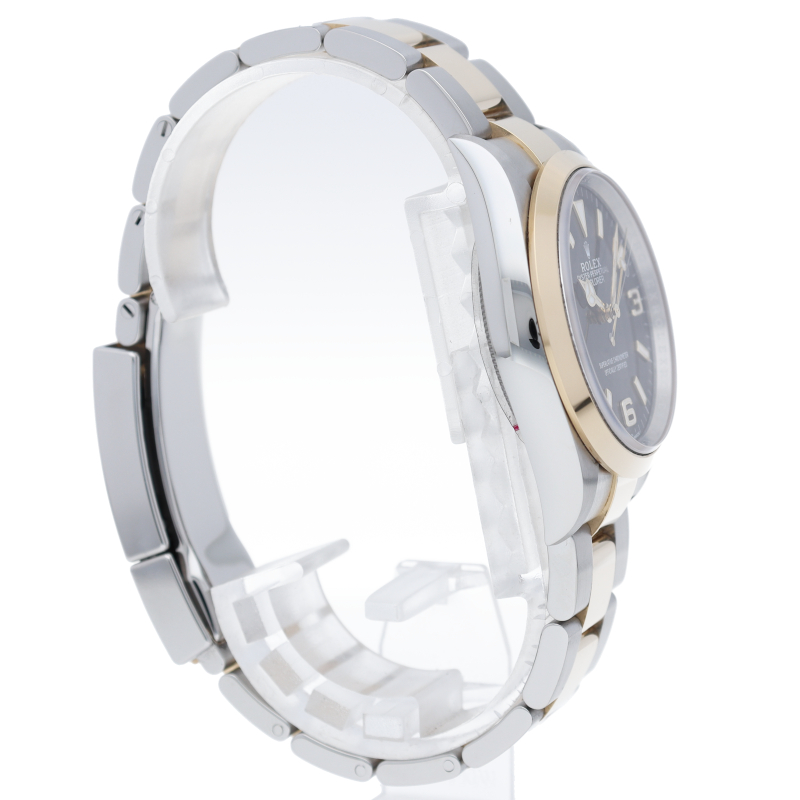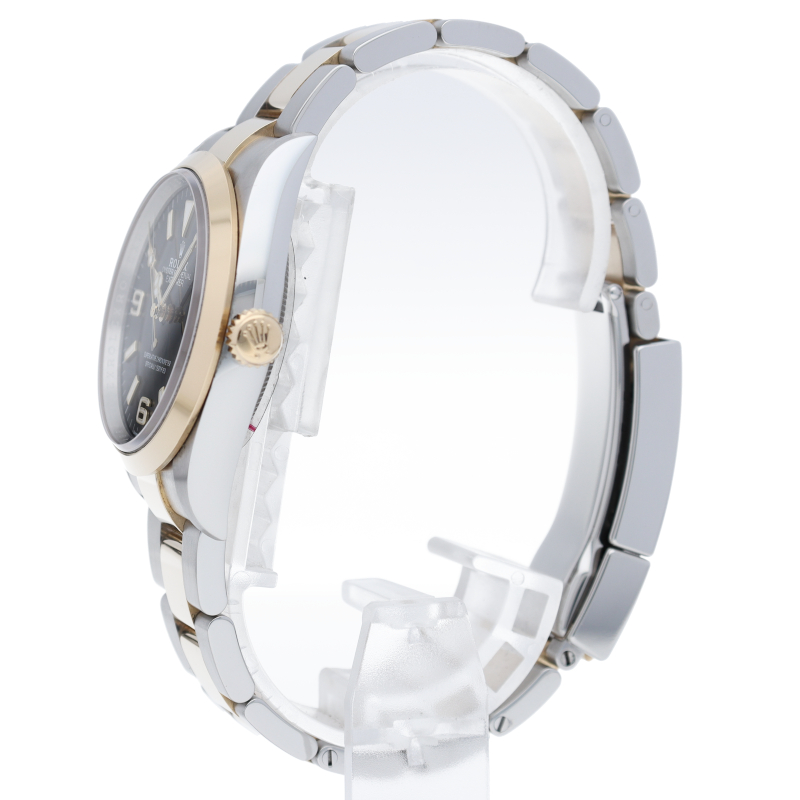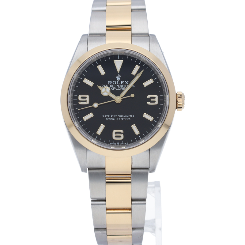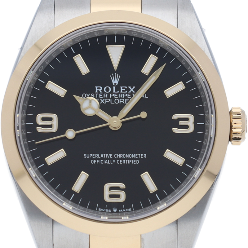 新たに加わったイエローゴールドとステンレスのコンビモデルのRef.124273も、124270と同様に36mmケースでの登場となりました。ムーブメントには、高いエネルギー効率と信頼性を両立させるロレックス特許のクロナジーエスケープメントを採用し、シリコン製ヘアスプリングと高性能パラフレックスショックアブソーバを装備した70時間パワーリザーブのキャリバー3230を搭載。
