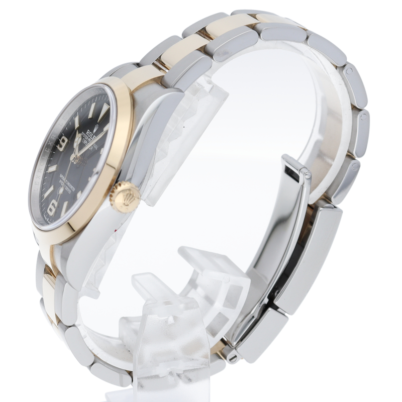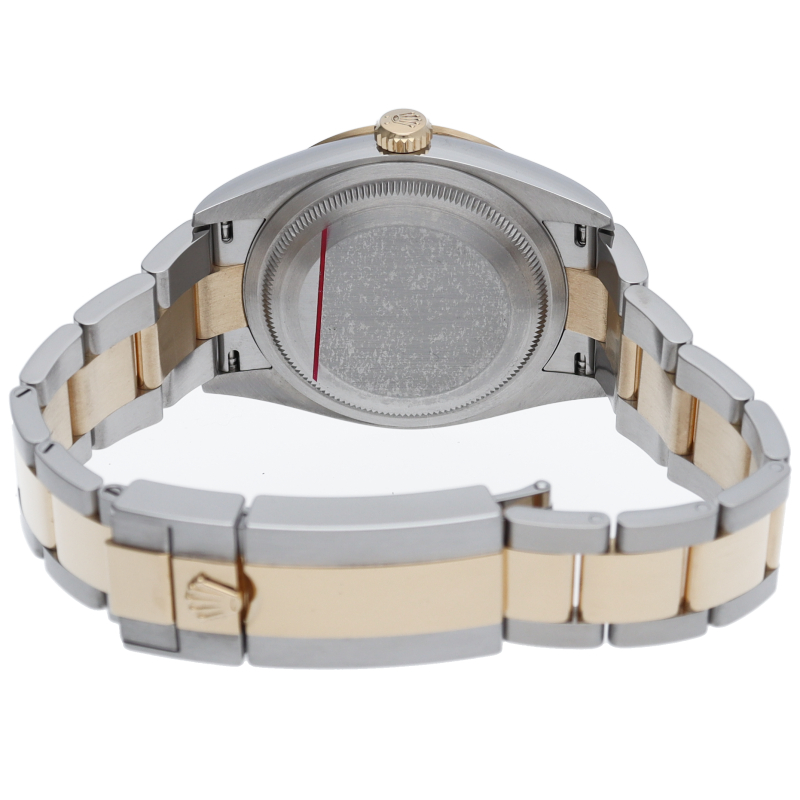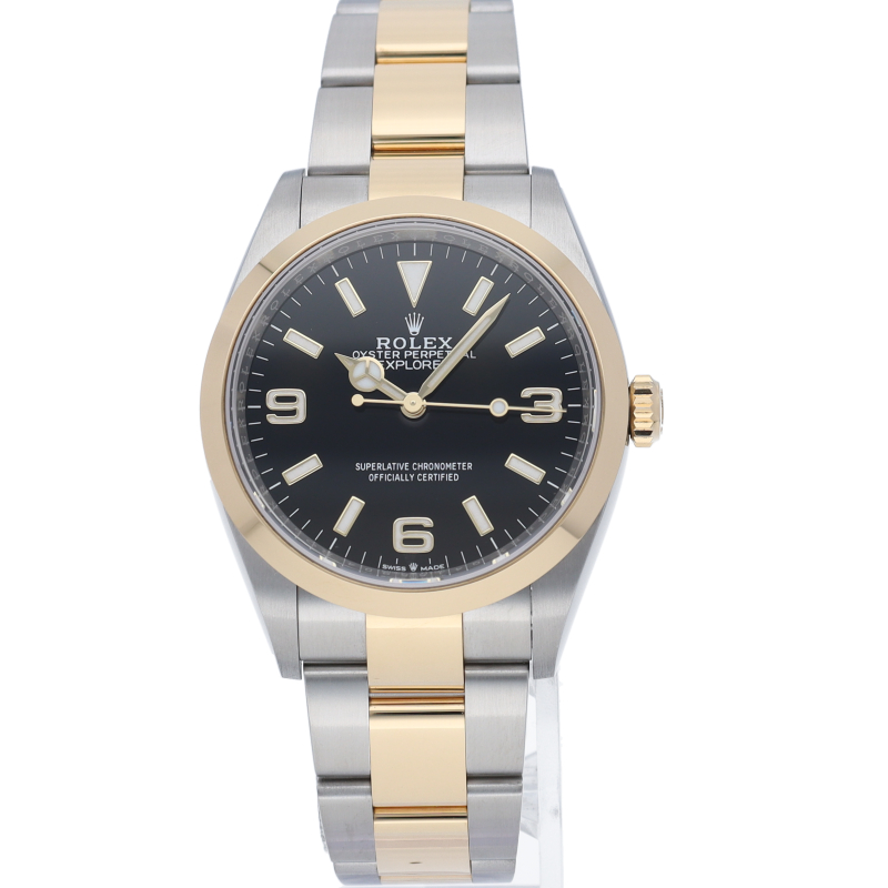 新たに加わったイエローゴールドとステンレスのコンビモデルのRef.124273も、124270と同様に36mmケースでの登場となりました。ムーブメントには、高いエネルギー効率と信頼性を両立させるロレックス特許のクロナジーエスケープメントを採用し、シリコン製ヘアスプリングと高性能パラフレックスショックアブソーバを装備した70時間パワーリザーブのキャリバー3230を搭載。