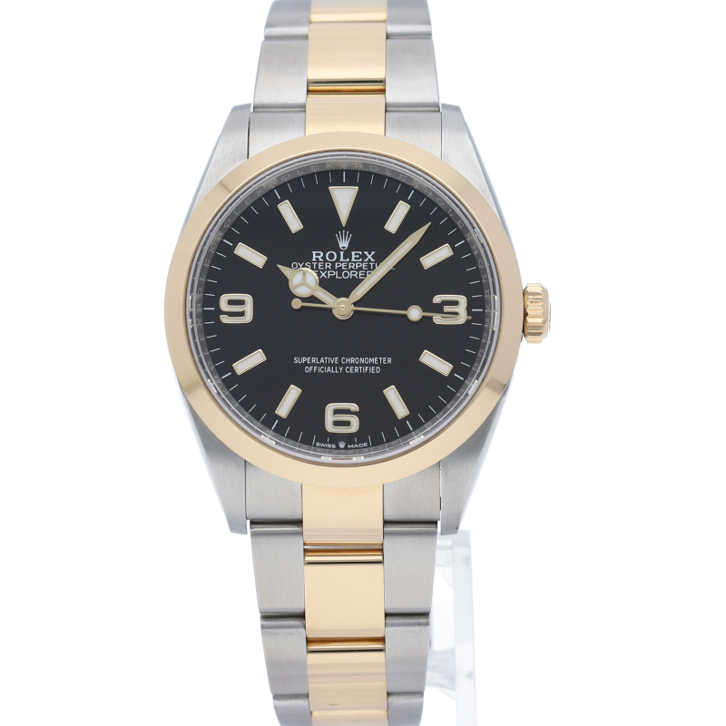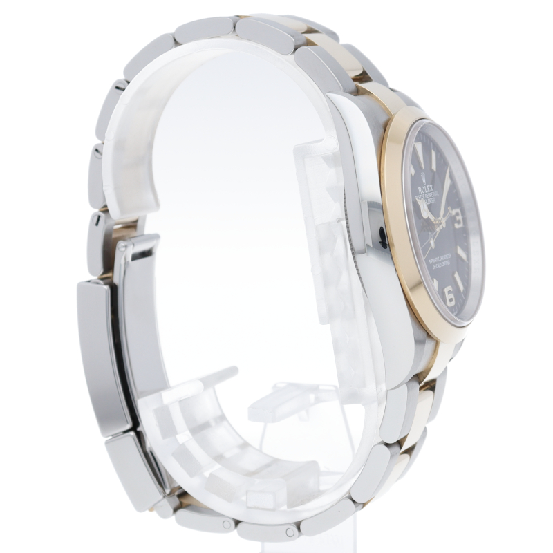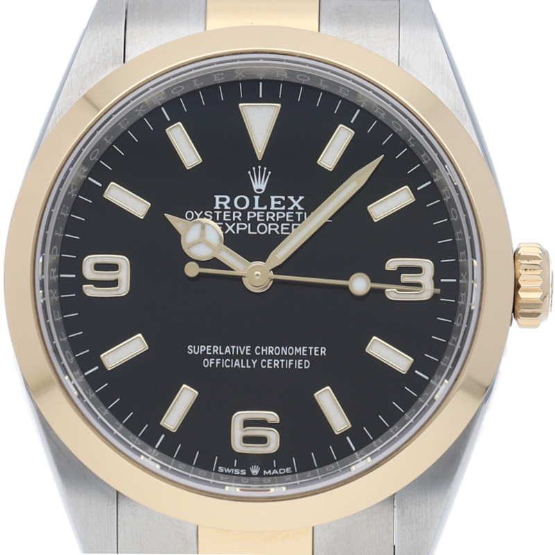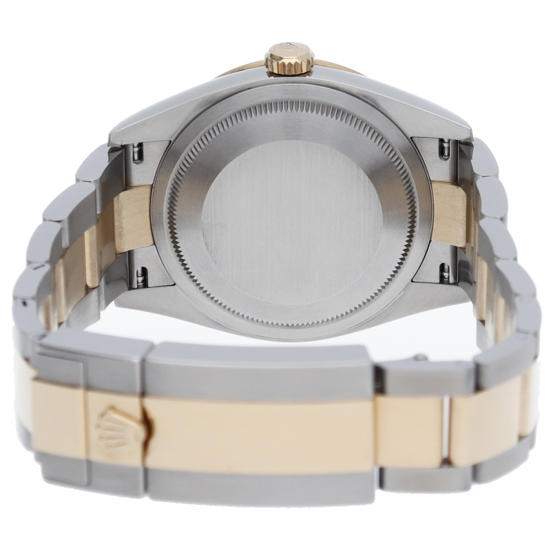 新たに加わったイエローゴールドとステンレスのコンビモデルのRef.124273も、124270と同様に36mmケースでの登場となりました。ムーブメントには、高いエネルギー効率と信頼性を両立させるロレックス特許のクロナジーエスケープメントを採用し、シリコン製ヘアスプリングと高性能パラフレックスショックアブソーバを装備した70時間パワーリザーブのキャリバー3230を搭載。