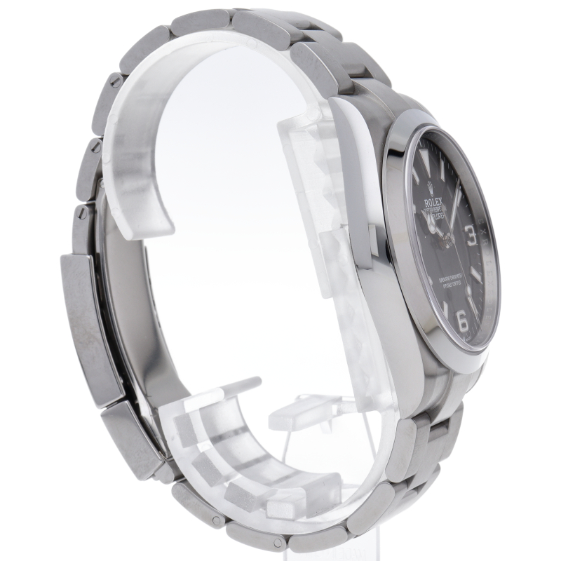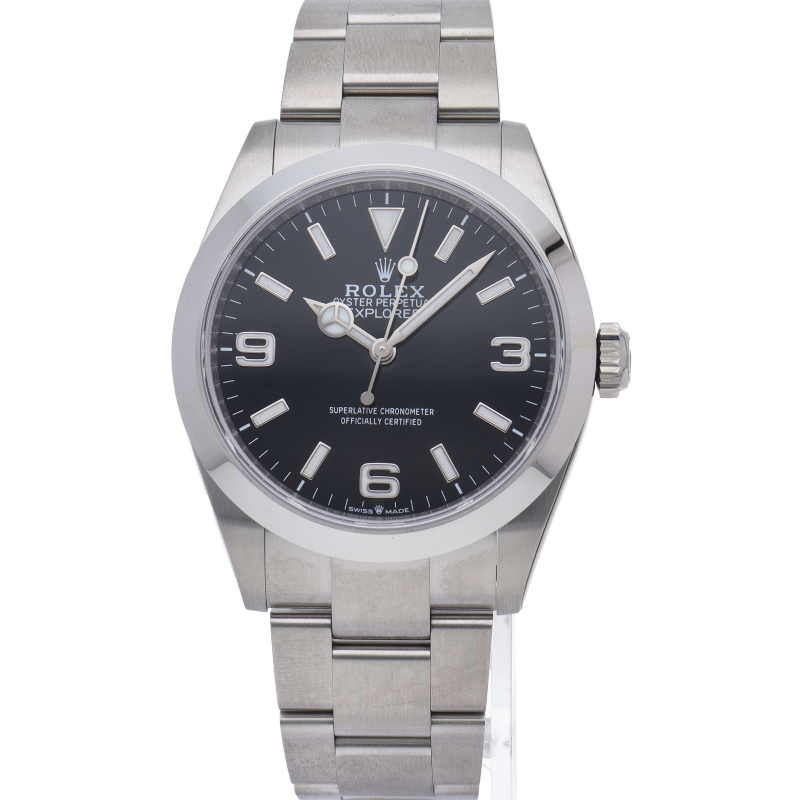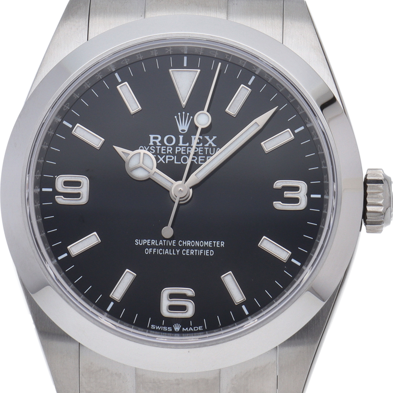 1953年に誕生した冒険家の為の時計、オイスターパーペチュアル エクスプローラー40。ムーブメントには、高いエネルギー効率と信頼性を両立させるロレックス特許のクロナジーエスケープメントを採用し、シリコン製ヘアスプリングと高性能パラフレックスショックアブソーバを装備した70時間パワーリザーブのキャリバー3230を搭載しています。2023年登場の新型モデル。