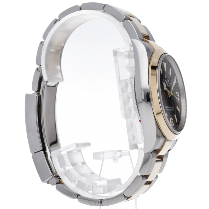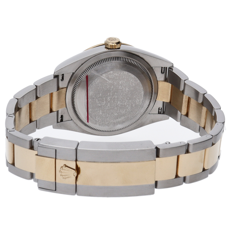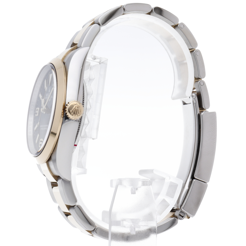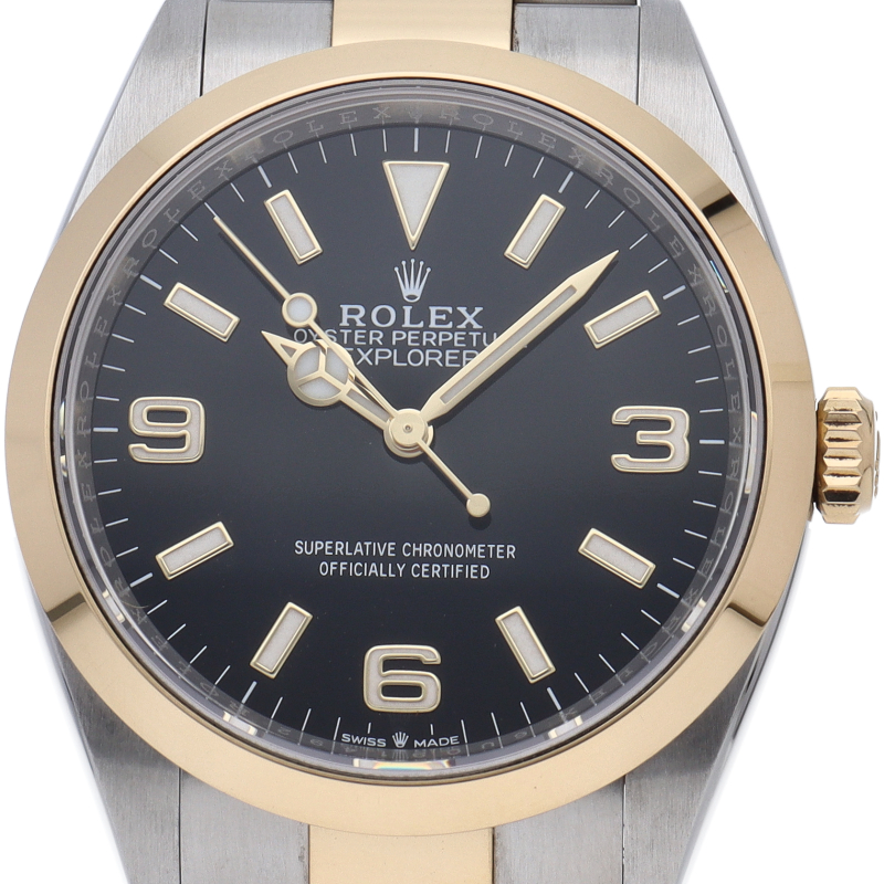 新たに加わったイエローゴールドとステンレスのコンビモデルのRef.124273も、124270と同様に36mmケースでの登場となりました。ムーブメントには、高いエネルギー効率と信頼性を両立させるロレックス特許のクロナジーエスケープメントを採用し、シリコン製ヘアスプリングと高性能パラフレックスショックアブソーバを装備した70時間パワーリザーブのキャリバー3230を搭載。