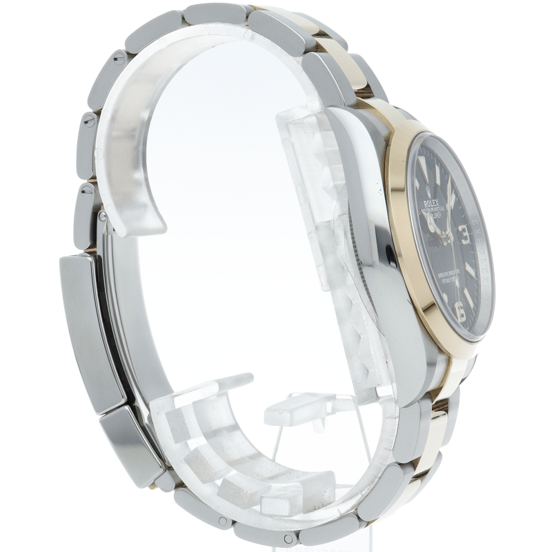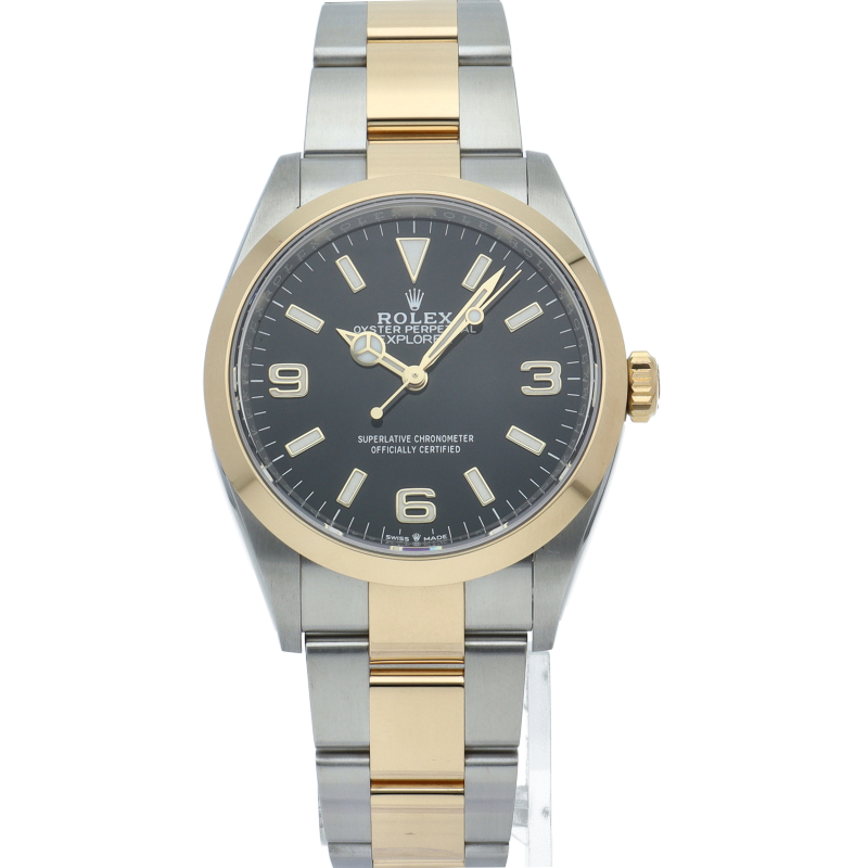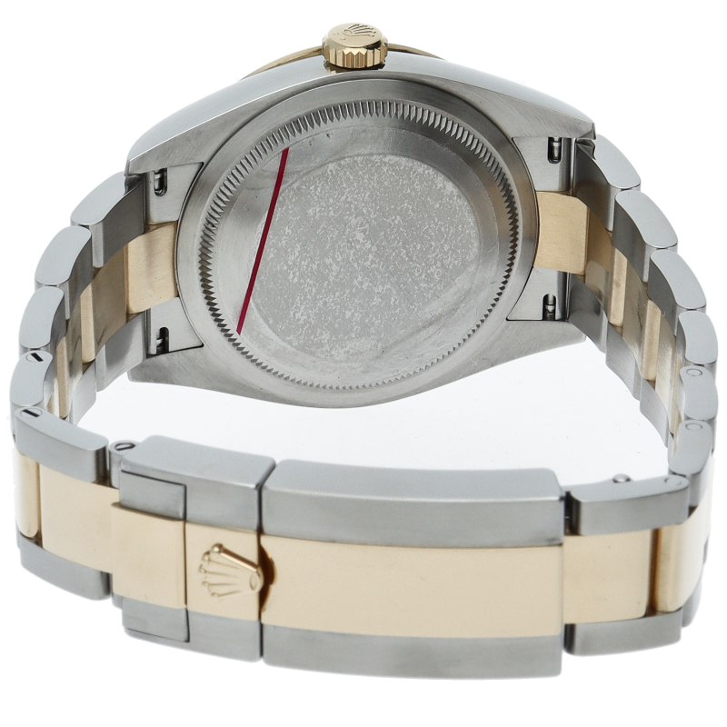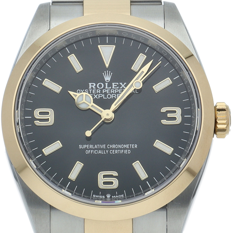 新たに加わったイエローゴールドとステンレスのコンビモデルのRef.124273も、124270と同様に36mmケースでの登場となりました。ムーブメントには、高いエネルギー効率と信頼性を両立させるロレックス特許のクロナジーエスケープメントを採用し、シリコン製ヘアスプリングと高性能パラフレックスショックアブソーバを装備した70時間パワーリザーブのキャリバー3230を搭載。