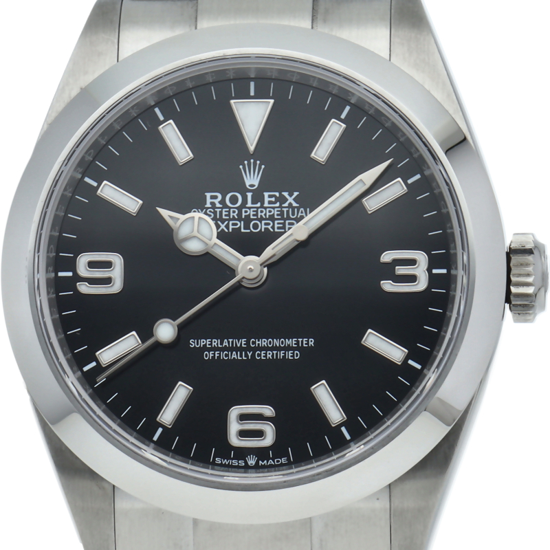 1953年に誕生した冒険家の為の時計、オイスターパーペチュアル エクスプローラー40。ムーブメントには、高いエネルギー効率と信頼性を両立させるロレックス特許のクロナジーエスケープメントを採用し、シリコン製ヘアスプリングと高性能パラフレックスショックアブソーバを装備した70時間パワーリザーブのキャリバー3230を搭載しています。2023年登場の新型モデル。