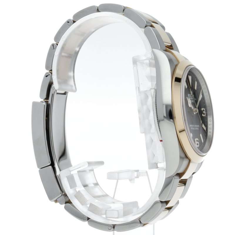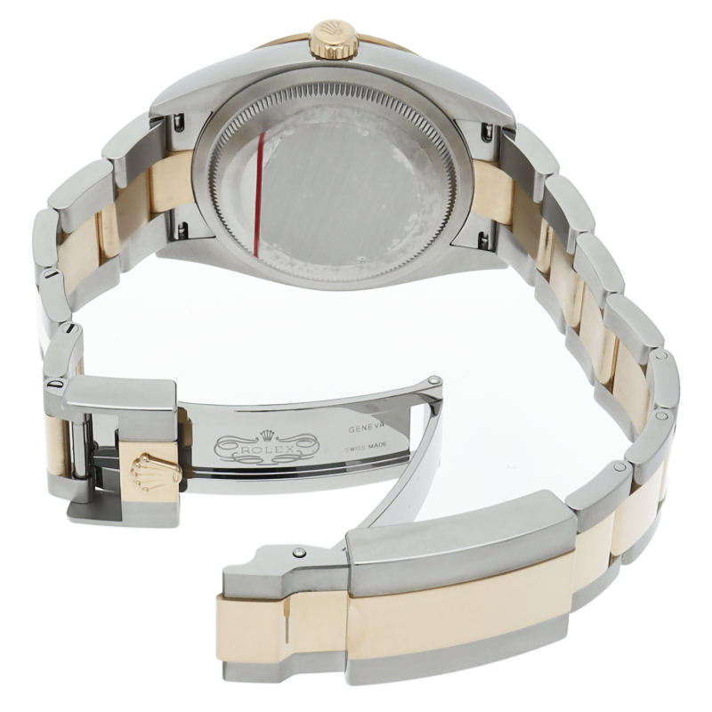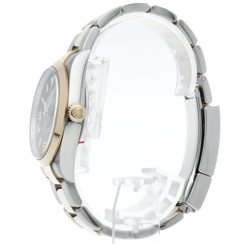 新たに加わったイエローゴールドとステンレスのコンビモデルのRef.124273も、124270と同様に36mmケースでの登場となりました。ムーブメントには、高いエネルギー効率と信頼性を両立させるロレックス特許のクロナジーエスケープメントを採用し、シリコン製ヘアスプリングと高性能パラフレックスショックアブソーバを装備した70時間パワーリザーブのキャリバー3230を搭載。