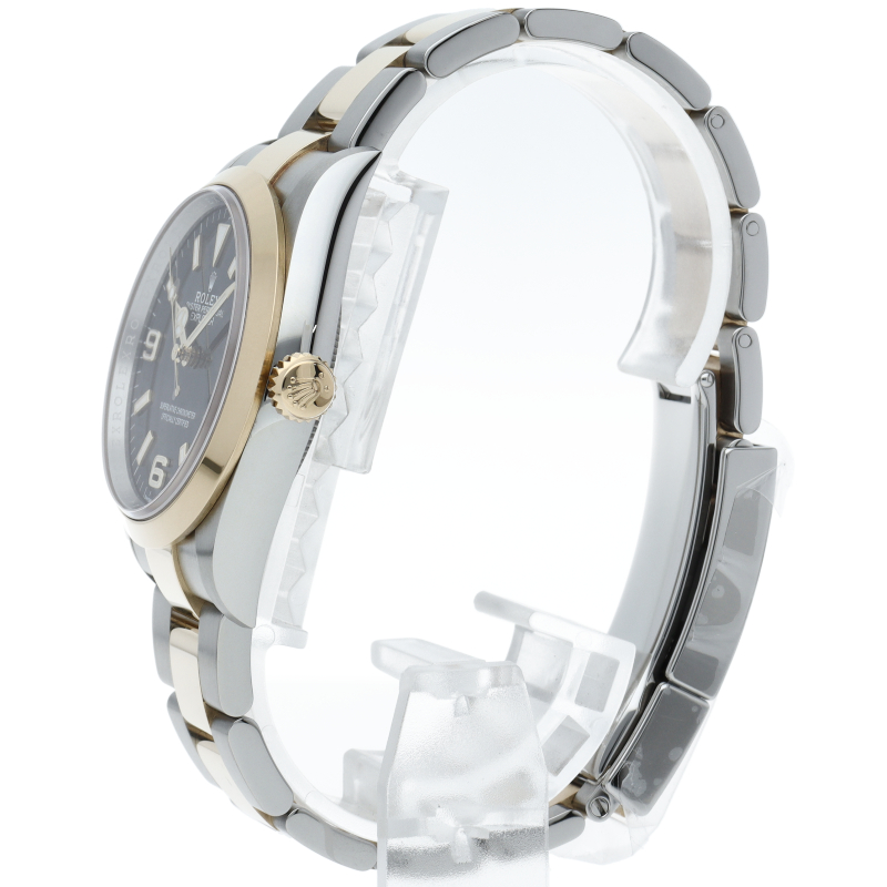 新たに加わったイエローゴールドとステンレスのコンビモデルのRef.124273も、124270と同様に36mmケースでの登場となりました。ムーブメントには、高いエネルギー効率と信頼性を両立させるロレックス特許のクロナジーエスケープメントを採用し、シリコン製ヘアスプリングと高性能パラフレックスショックアブソーバを装備した70時間パワーリザーブのキャリバー3230を搭載。