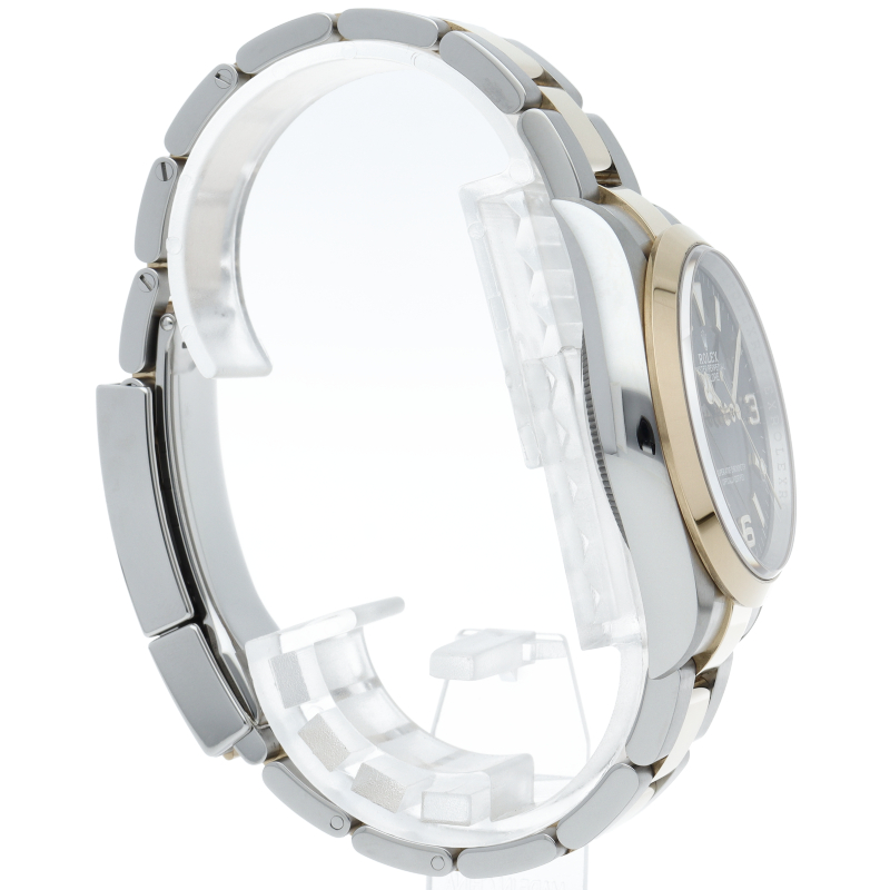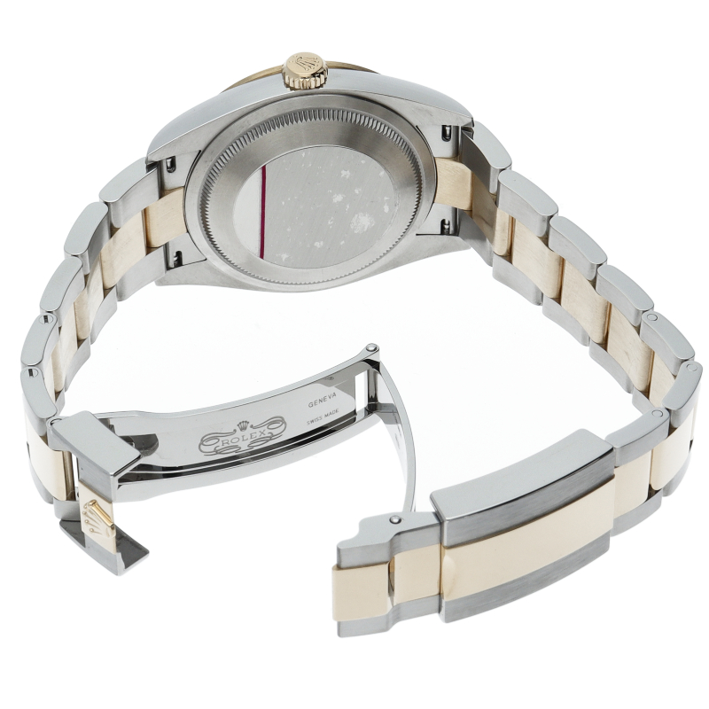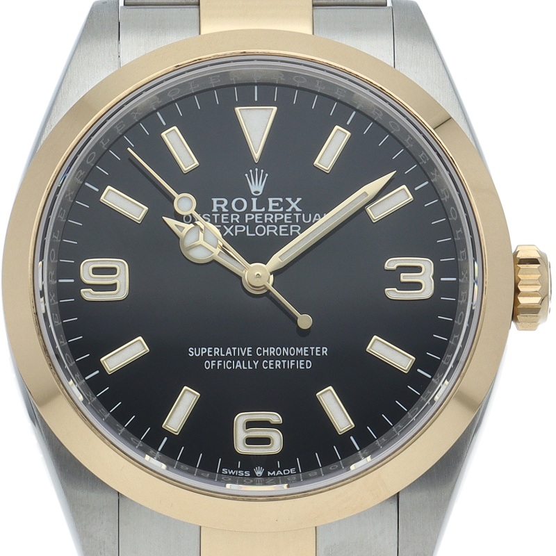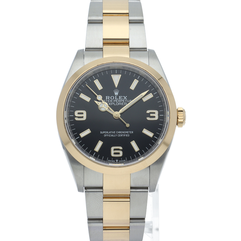 新たに加わったイエローゴールドとステンレスのコンビモデルのRef.124273も、124270と同様に36mmケースでの登場となりました。ムーブメントには、高いエネルギー効率と信頼性を両立させるロレックス特許のクロナジーエスケープメントを採用し、シリコン製ヘアスプリングと高性能パラフレックスショックアブソーバを装備した70時間パワーリザーブのキャリバー3230を搭載。