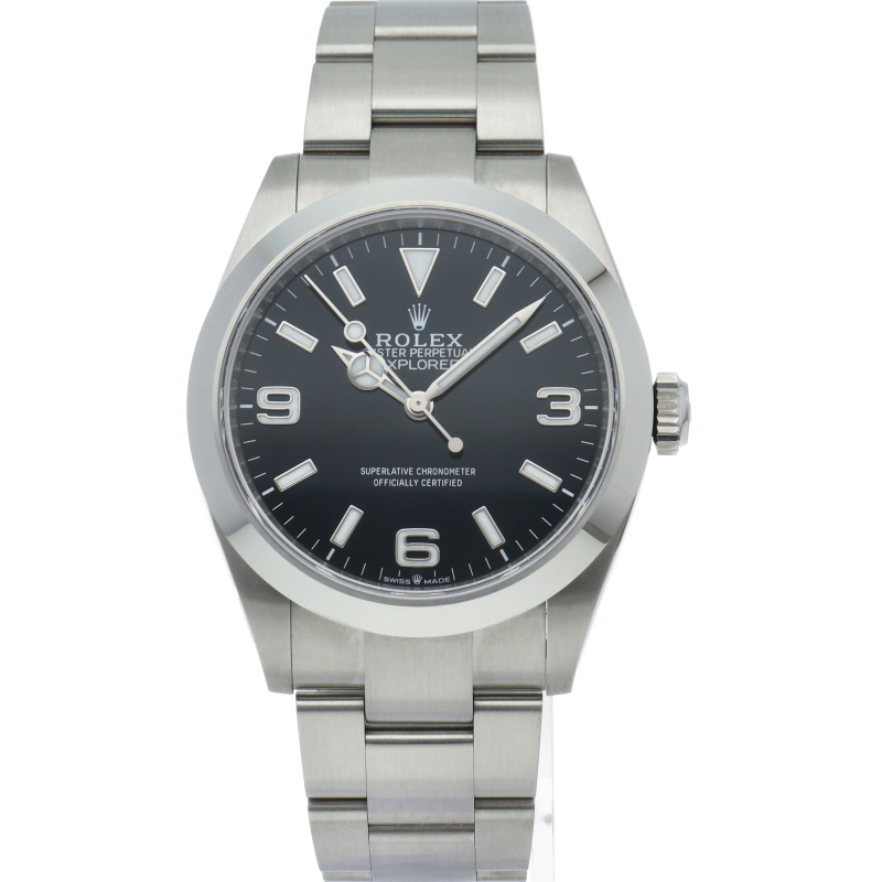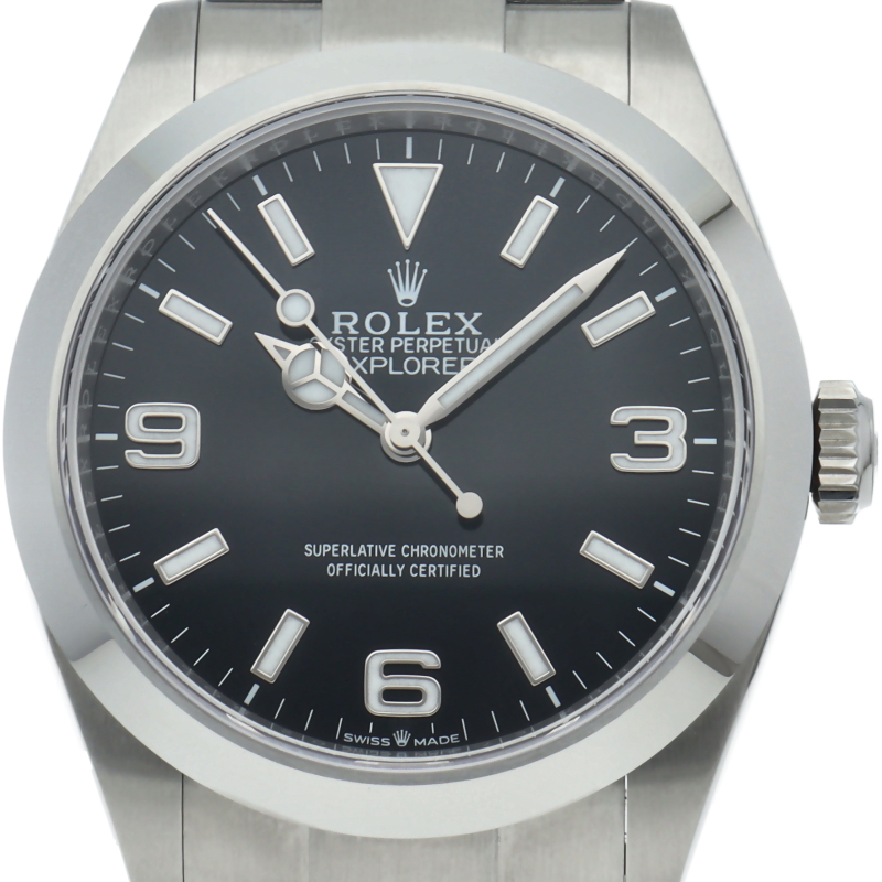 1953年に誕生した冒険家の為の時計、オイスターパーペチュアル エクスプローラー40。ムーブメントには、高いエネルギー効率と信頼性を両立させるロレックス特許のクロナジーエスケープメントを採用し、シリコン製ヘアスプリングと高性能パラフレックスショックアブソーバを装備した70時間パワーリザーブのキャリバー3230を搭載しています。2023年登場の新型モデル。