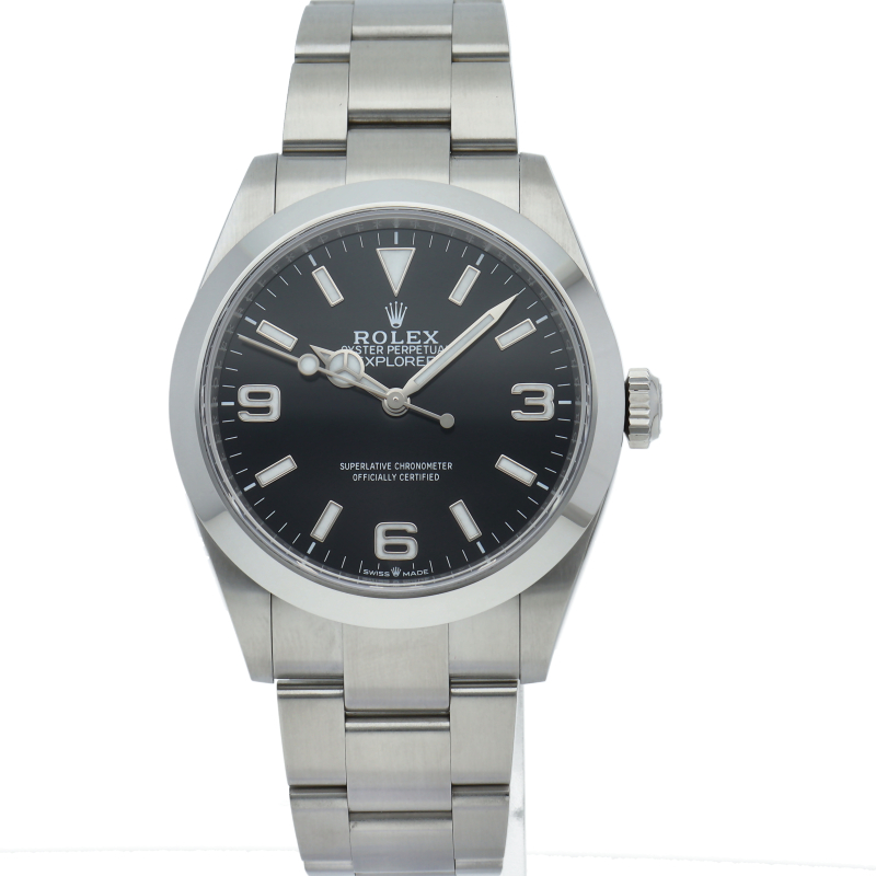 1953年に誕生した冒険家の為の時計、オイスターパーペチュアル エクスプローラー40。ムーブメントには、高いエネルギー効率と信頼性を両立させるロレックス特許のクロナジーエスケープメントを採用し、シリコン製ヘアスプリングと高性能パラフレックスショックアブソーバを装備した70時間パワーリザーブのキャリバー3230を搭載しています。2023年登場の新型モデル。