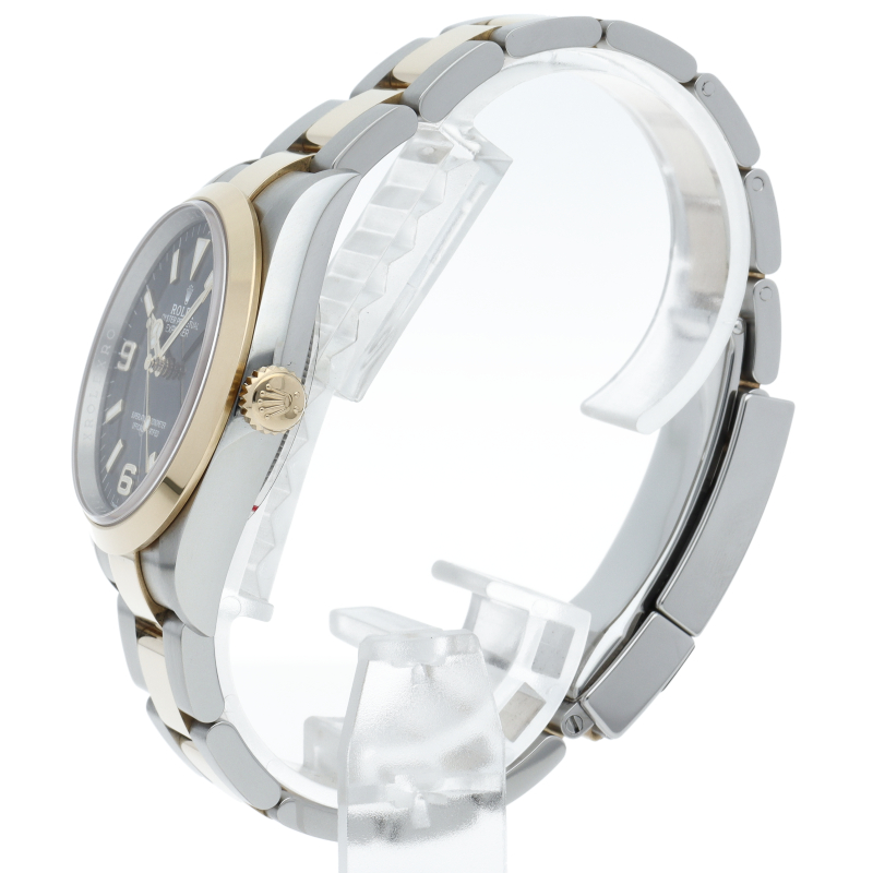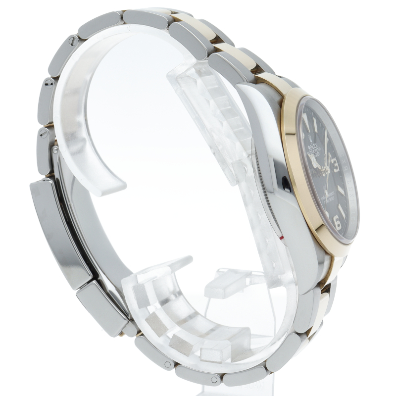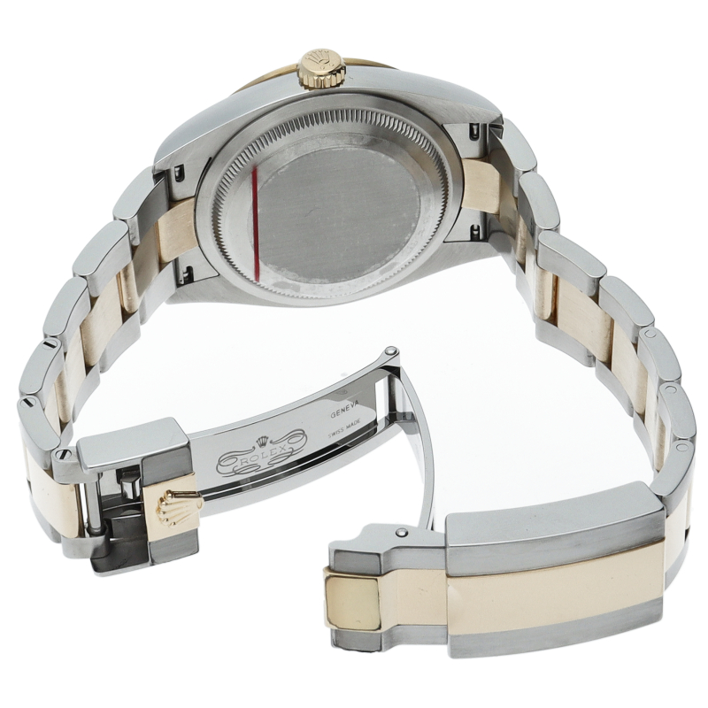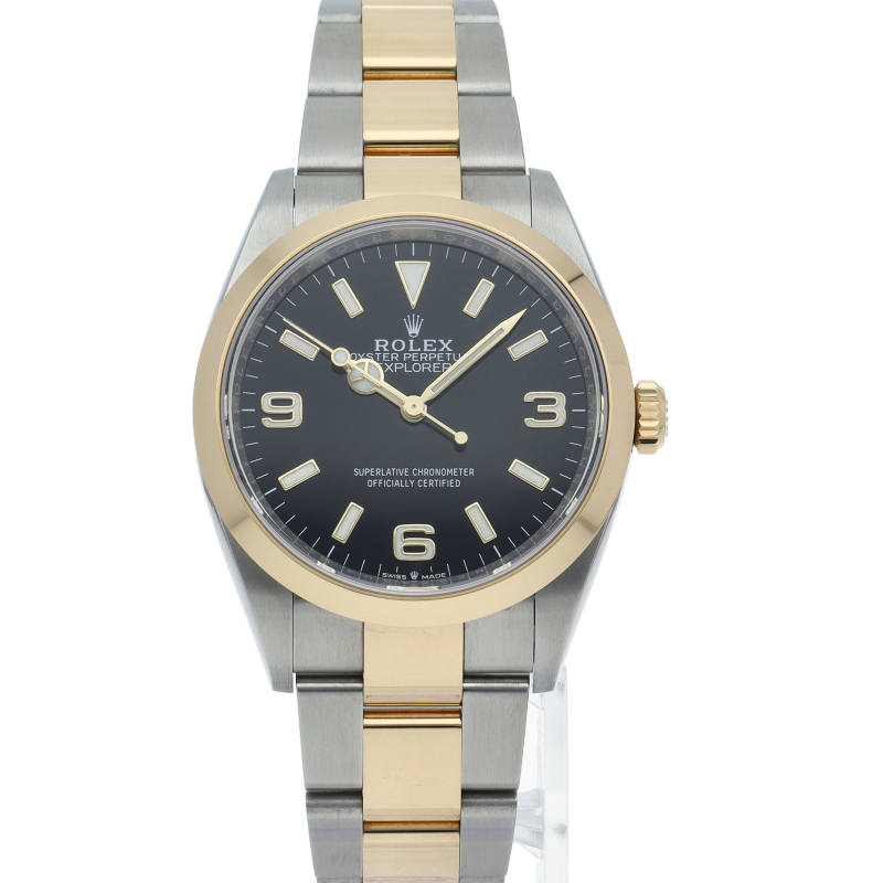 新たに加わったイエローゴールドとステンレスのコンビモデルのRef.124273も、124270と同様に36mmケースでの登場となりました。ムーブメントには、高いエネルギー効率と信頼性を両立させるロレックス特許のクロナジーエスケープメントを採用し、シリコン製ヘアスプリングと高性能パラフレックスショックアブソーバを装備した70時間パワーリザーブのキャリバー3230を搭載。