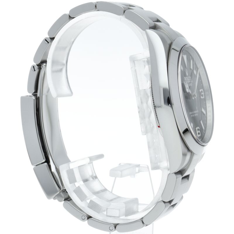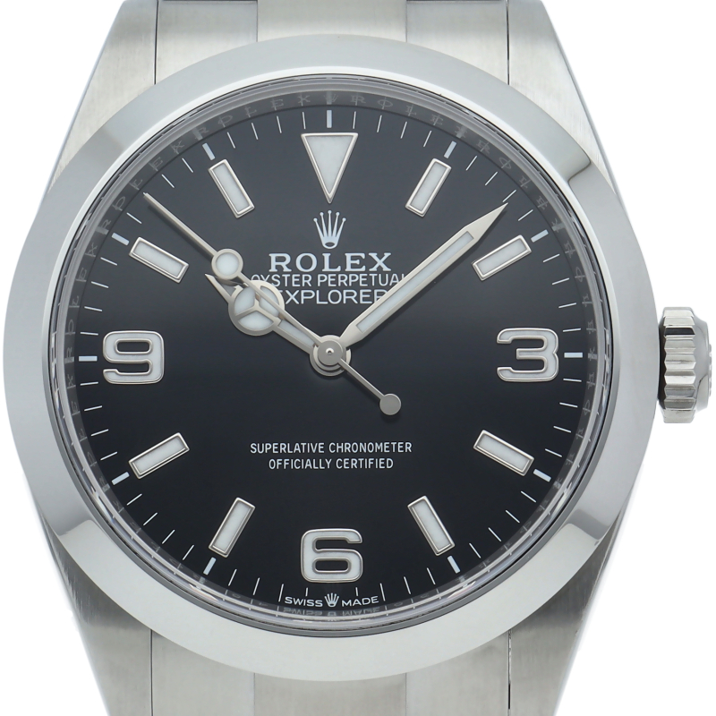 1953年に誕生した冒険家の為の時計、オイスターパーペチュアル エクスプローラー40。ムーブメントには、高いエネルギー効率と信頼性を両立させるロレックス特許のクロナジーエスケープメントを採用し、シリコン製ヘアスプリングと高性能パラフレックスショックアブソーバを装備した70時間パワーリザーブのキャリバー3230を搭載しています。2023年登場の新型モデル。