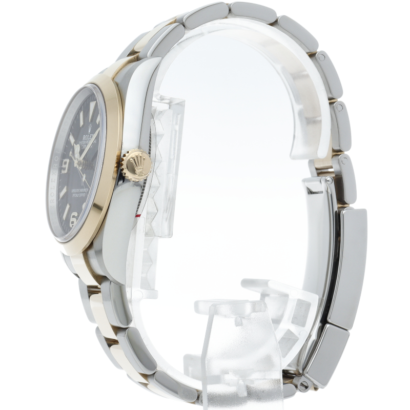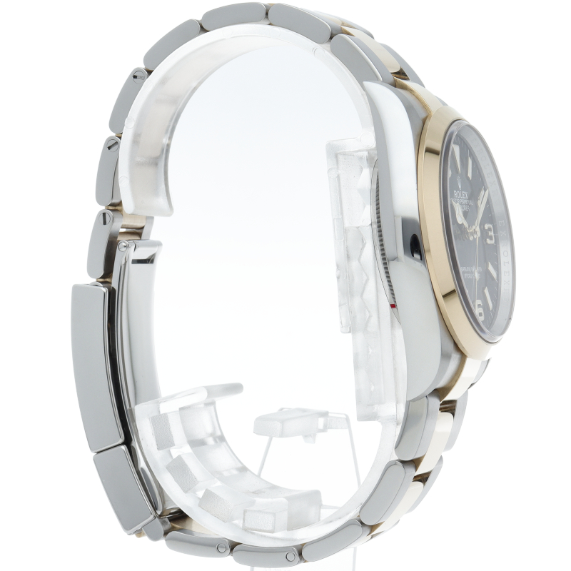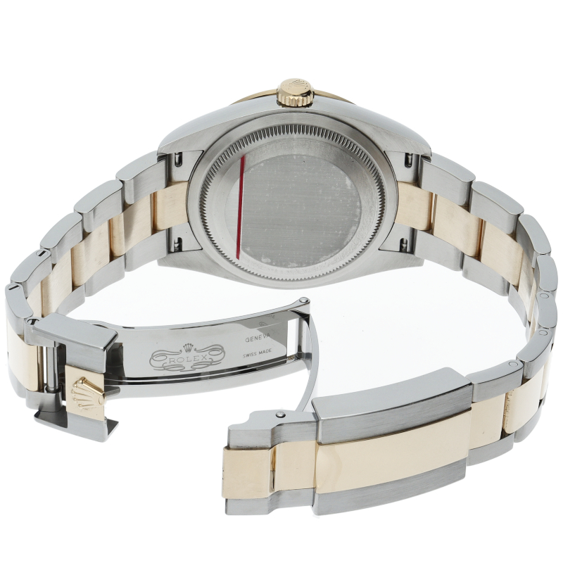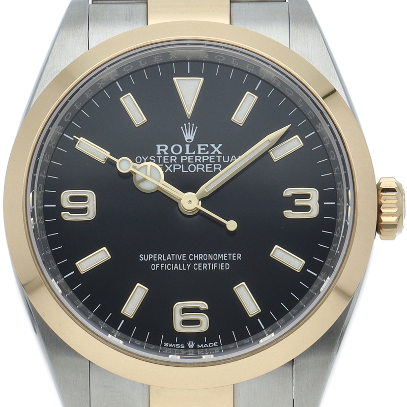 新たに加わったイエローゴールドとステンレスのコンビモデルのRef.124273も、124270と同様に36mmケースでの登場となりました。ムーブメントには、高いエネルギー効率と信頼性を両立させるロレックス特許のクロナジーエスケープメントを採用し、シリコン製ヘアスプリングと高性能パラフレックスショックアブソーバを装備した70時間パワーリザーブのキャリバー3230を搭載。