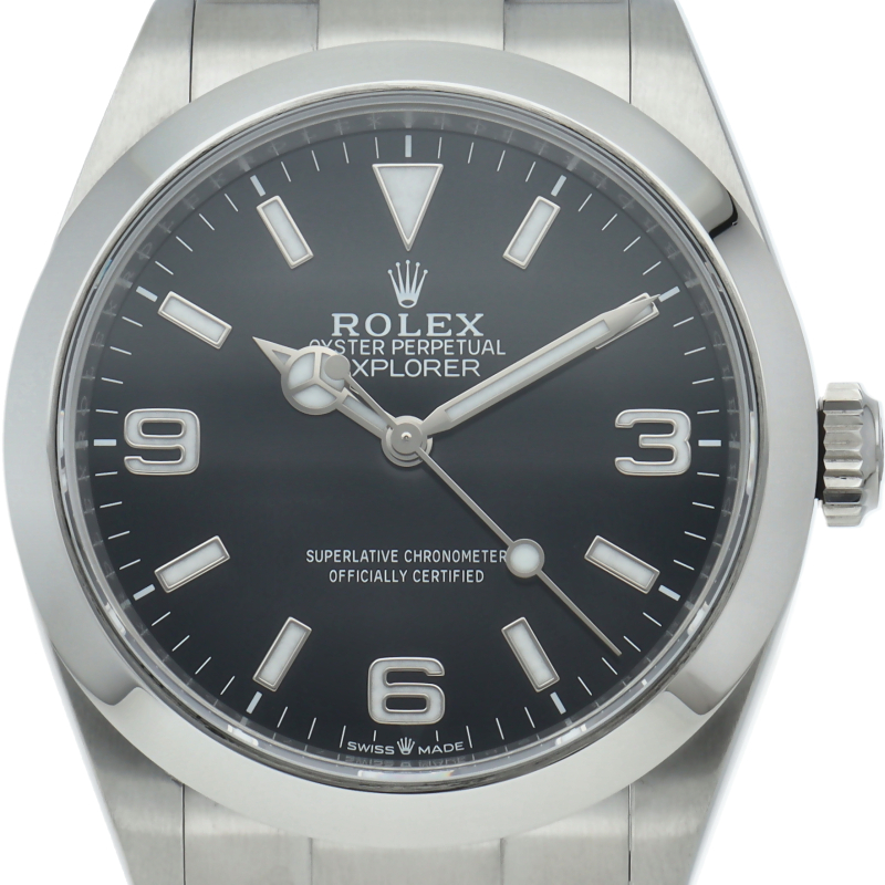 1953年に誕生した冒険家の為の時計、オイスターパーペチュアル エクスプローラー40。ムーブメントには、高いエネルギー効率と信頼性を両立させるロレックス特許のクロナジーエスケープメントを採用し、シリコン製ヘアスプリングと高性能パラフレックスショックアブソーバを装備した70時間パワーリザーブのキャリバー3230を搭載しています。2023年登場の新型モデル。