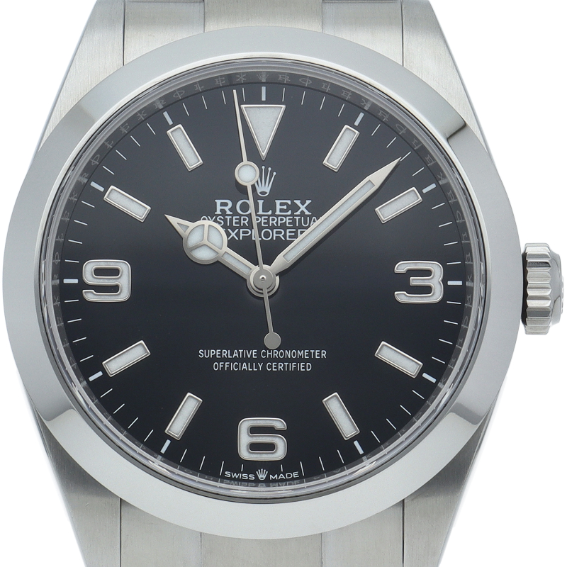 1953年に誕生した冒険家の為の時計、オイスターパーペチュアル エクスプローラー40。ムーブメントには、高いエネルギー効率と信頼性を両立させるロレックス特許のクロナジーエスケープメントを採用し、シリコン製ヘアスプリングと高性能パラフレックスショックアブソーバを装備した70時間パワーリザーブのキャリバー3230を搭載しています。2023年登場の新型モデル。