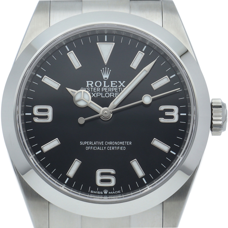 1953年に誕生した冒険家の為の時計、オイスターパーペチュアル エクスプローラー40。ムーブメントには、高いエネルギー効率と信頼性を両立させるロレックス特許のクロナジーエスケープメントを採用し、シリコン製ヘアスプリングと高性能パラフレックスショックアブソーバを装備した70時間パワーリザーブのキャリバー3230を搭載しています。2023年登場の新型モデル。