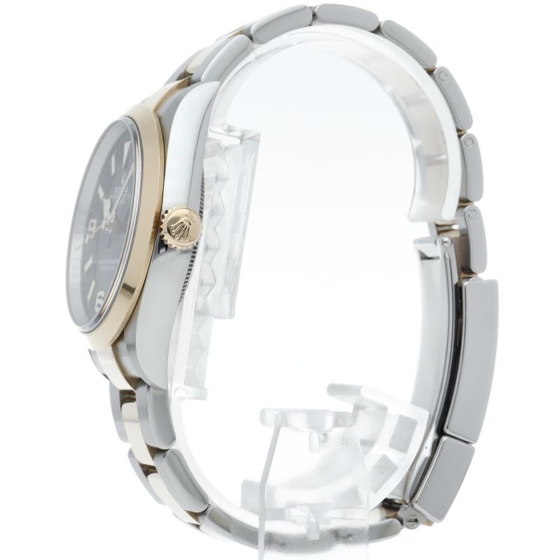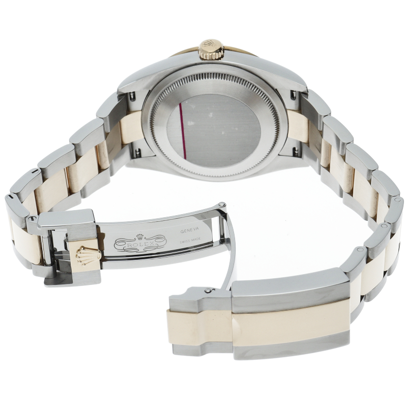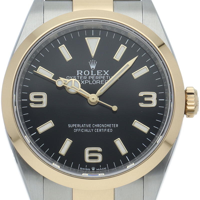 新たに加わったイエローゴールドとステンレスのコンビモデルのRef.124273も、124270と同様に36mmケースでの登場となりました。ムーブメントには、高いエネルギー効率と信頼性を両立させるロレックス特許のクロナジーエスケープメントを採用し、シリコン製ヘアスプリングと高性能パラフレックスショックアブソーバを装備した70時間パワーリザーブのキャリバー3230を搭載。