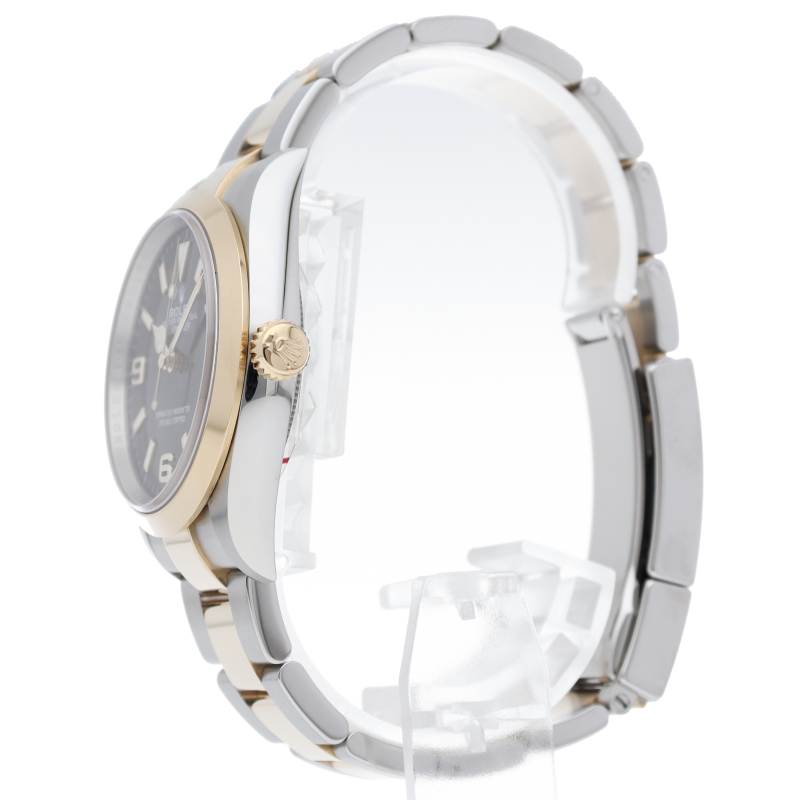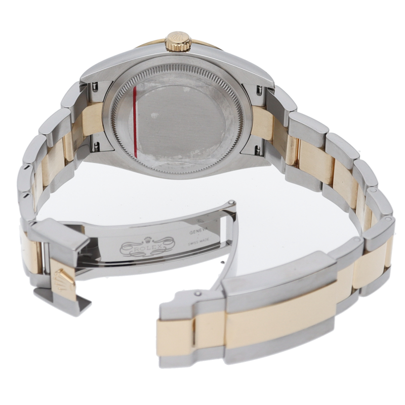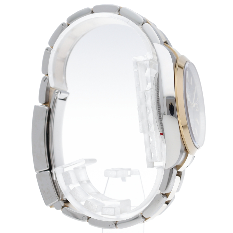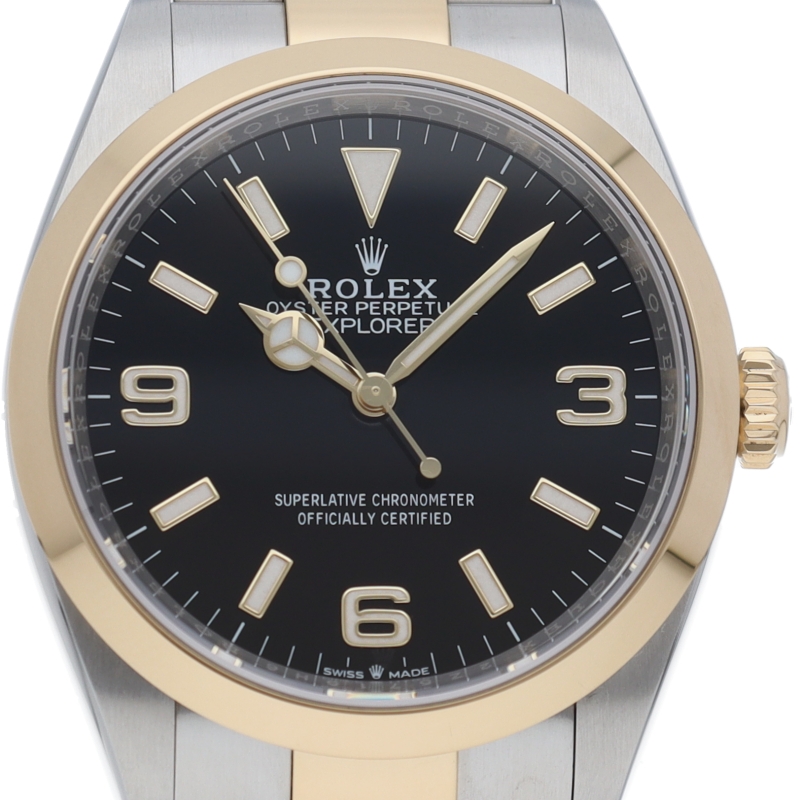 新たに加わったイエローゴールドとステンレスのコンビモデルのRef.124273も、124270と同様に36mmケースでの登場となりました。ムーブメントには、高いエネルギー効率と信頼性を両立させるロレックス特許のクロナジーエスケープメントを採用し、シリコン製ヘアスプリングと高性能パラフレックスショックアブソーバを装備した70時間パワーリザーブのキャリバー3230を搭載。
