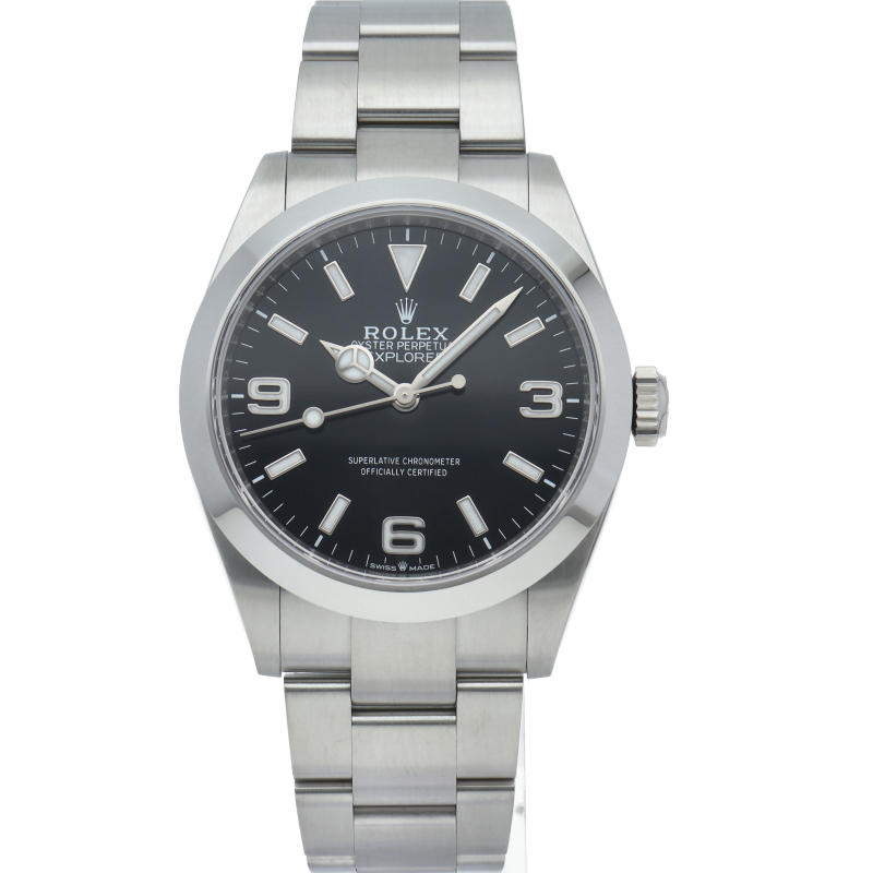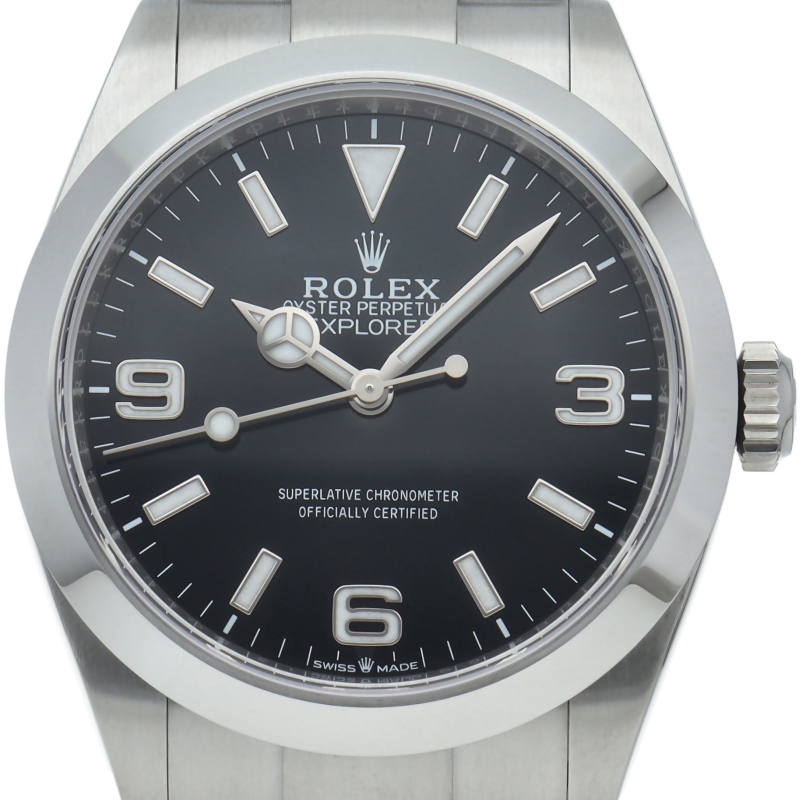 1953年に誕生した冒険家の為の時計、オイスターパーペチュアル エクスプローラー40。ムーブメントには、高いエネルギー効率と信頼性を両立させるロレックス特許のクロナジーエスケープメントを採用し、シリコン製ヘアスプリングと高性能パラフレックスショックアブソーバを装備した70時間パワーリザーブのキャリバー3230を搭載しています。2023年登場の新型モデル。