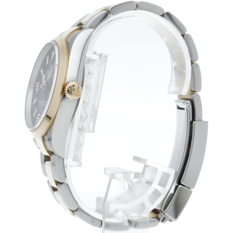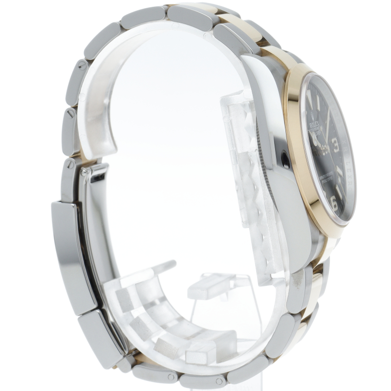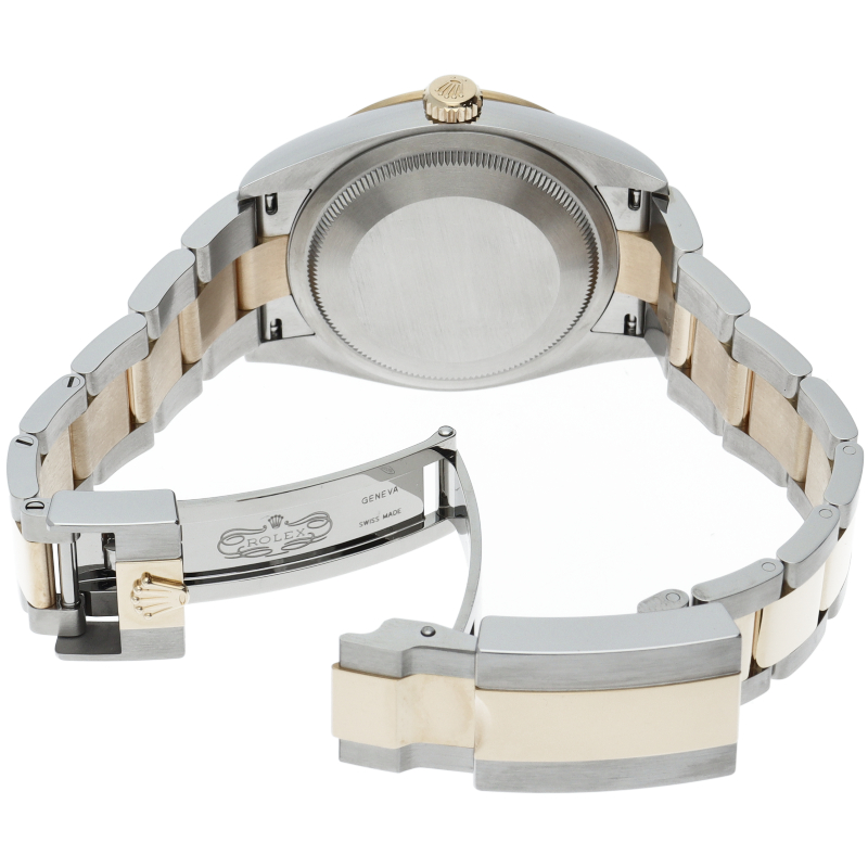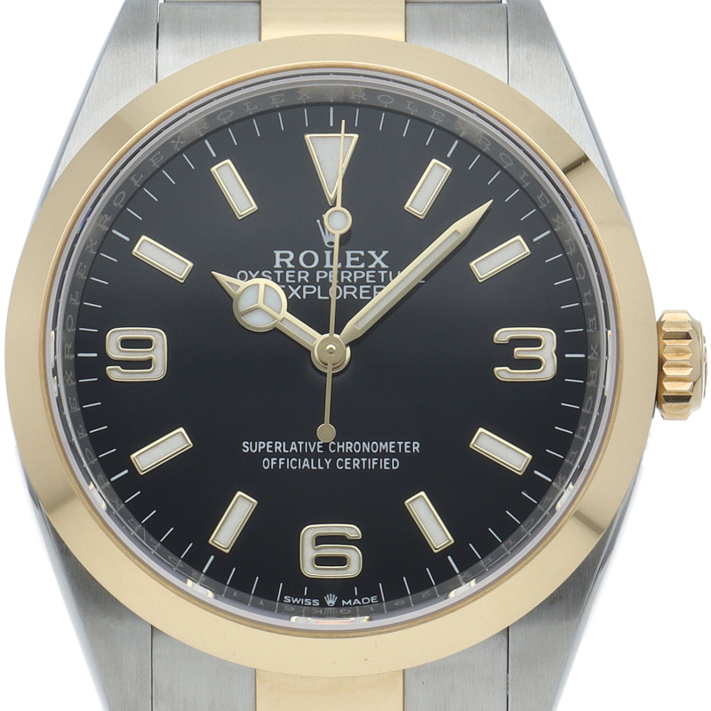 新たに加わったイエローゴールドとステンレスのコンビモデルのRef.124273も、124270と同様に36mmケースでの登場となりました。ムーブメントには、高いエネルギー効率と信頼性を両立させるロレックス特許のクロナジーエスケープメントを採用し、シリコン製ヘアスプリングと高性能パラフレックスショックアブソーバを装備した70時間パワーリザーブのキャリバー3230を搭載。