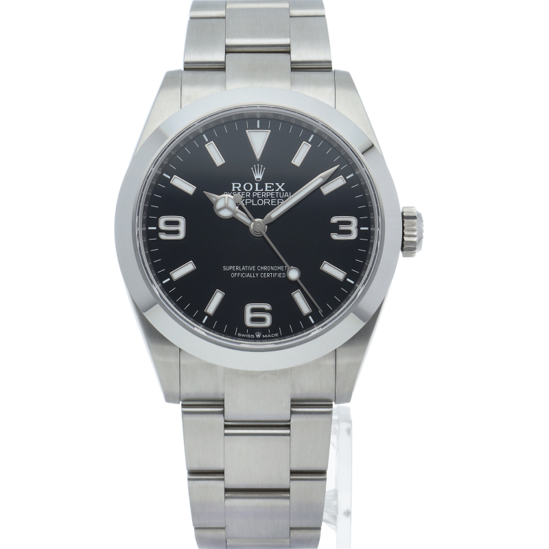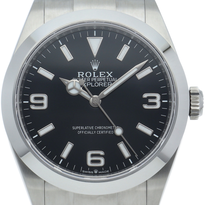 1953年に誕生した冒険家の為の時計、オイスターパーペチュアル エクスプローラー40。ムーブメントには、高いエネルギー効率と信頼性を両立させるロレックス特許のクロナジーエスケープメントを採用し、シリコン製ヘアスプリングと高性能パラフレックスショックアブソーバを装備した70時間パワーリザーブのキャリバー3230を搭載しています。2023年登場の新型モデル。