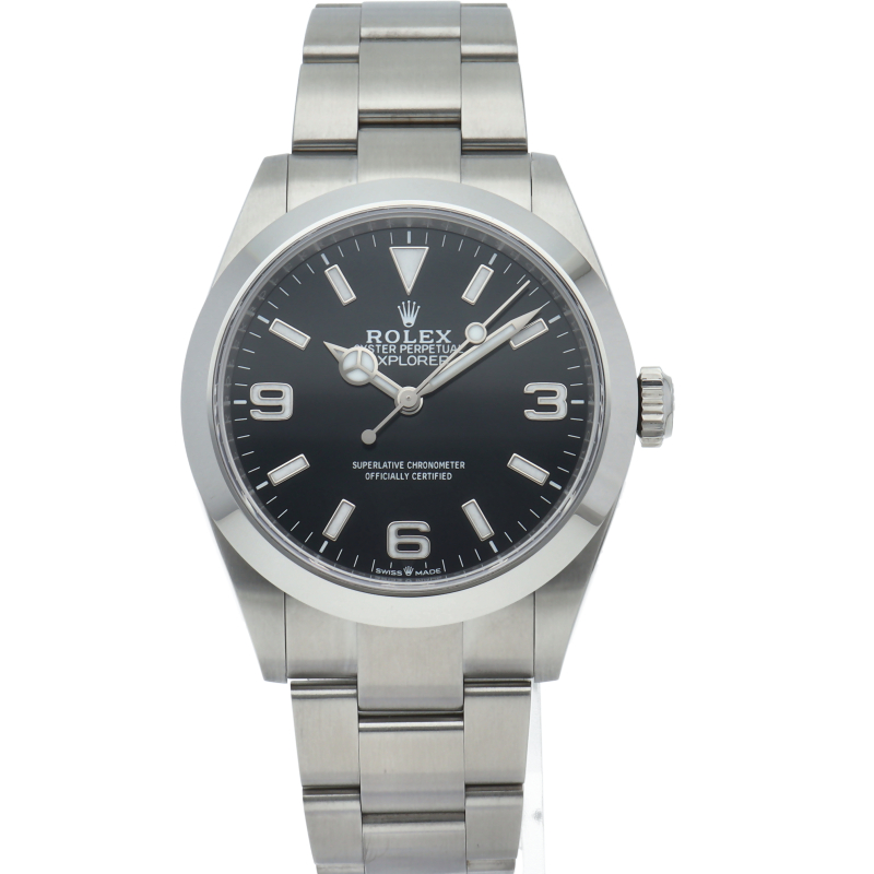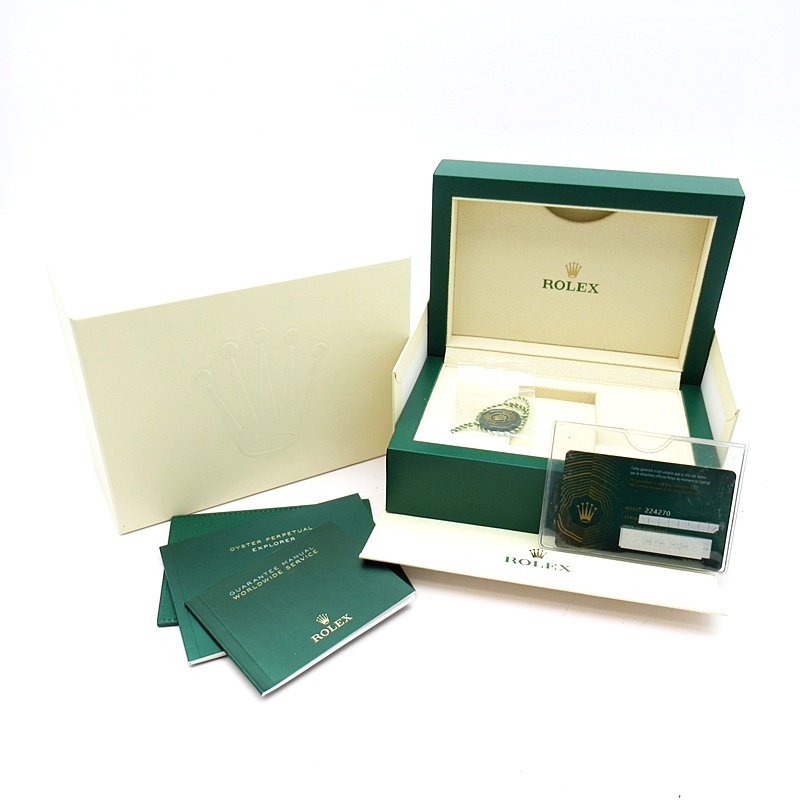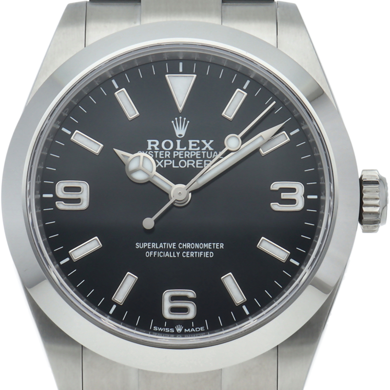 1953年に誕生した冒険家の為の時計、オイスターパーペチュアル エクスプローラー40。ムーブメントには、高いエネルギー効率と信頼性を両立させるロレックス特許のクロナジーエスケープメントを採用し、シリコン製ヘアスプリングと高性能パラフレックスショックアブソーバを装備した70時間パワーリザーブのキャリバー3230を搭載しています。2023年登場の新型モデル。