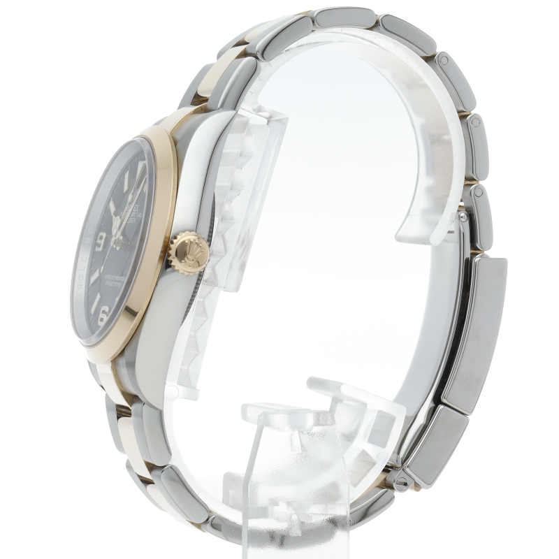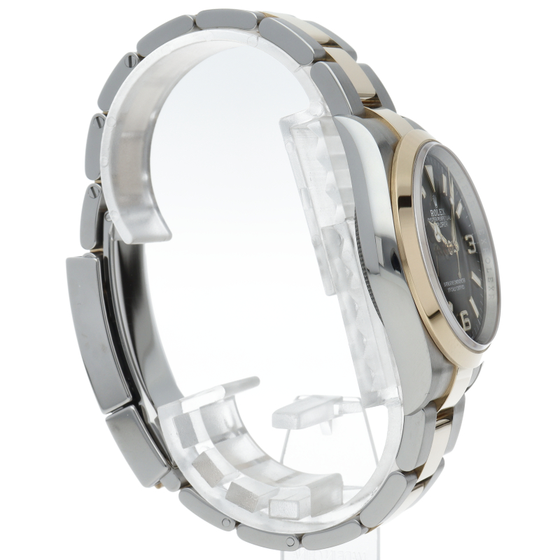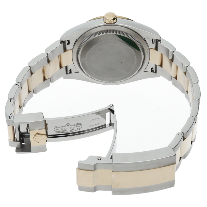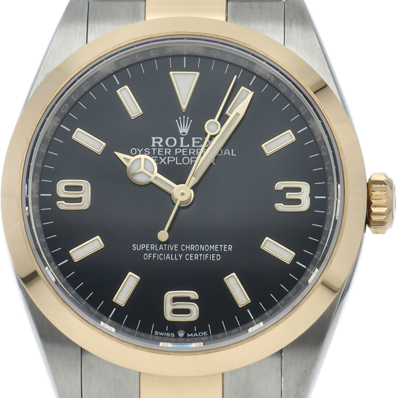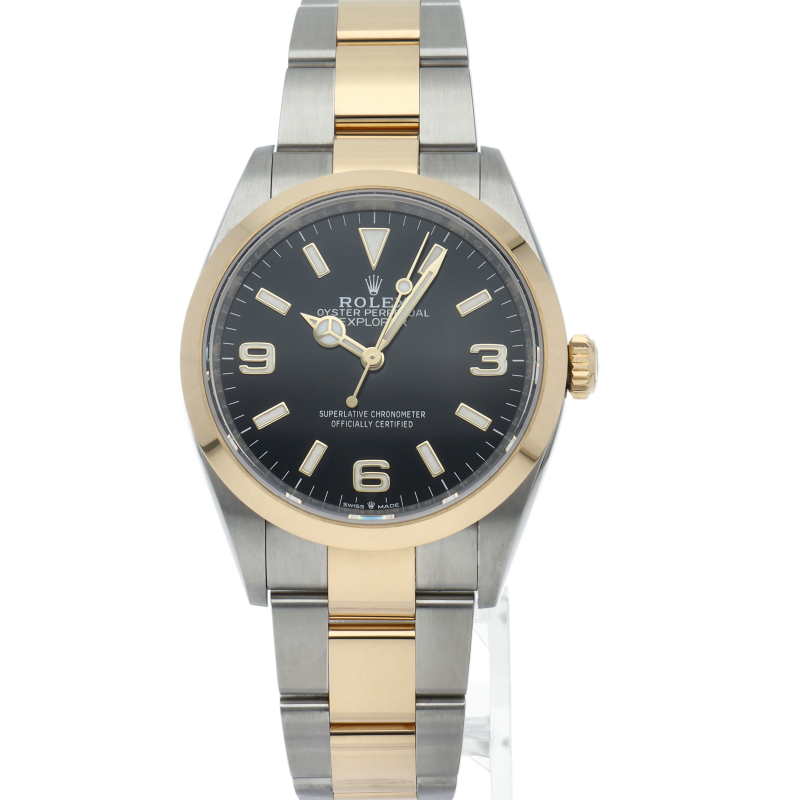 新たに加わったイエローゴールドとステンレスのコンビモデルのRef.124273も、124270と同様に36mmケースでの登場となりました。ムーブメントには、高いエネルギー効率と信頼性を両立させるロレックス特許のクロナジーエスケープメントを採用し、シリコン製ヘアスプリングと高性能パラフレックスショックアブソーバを装備した70時間パワーリザーブのキャリバー3230を搭載。