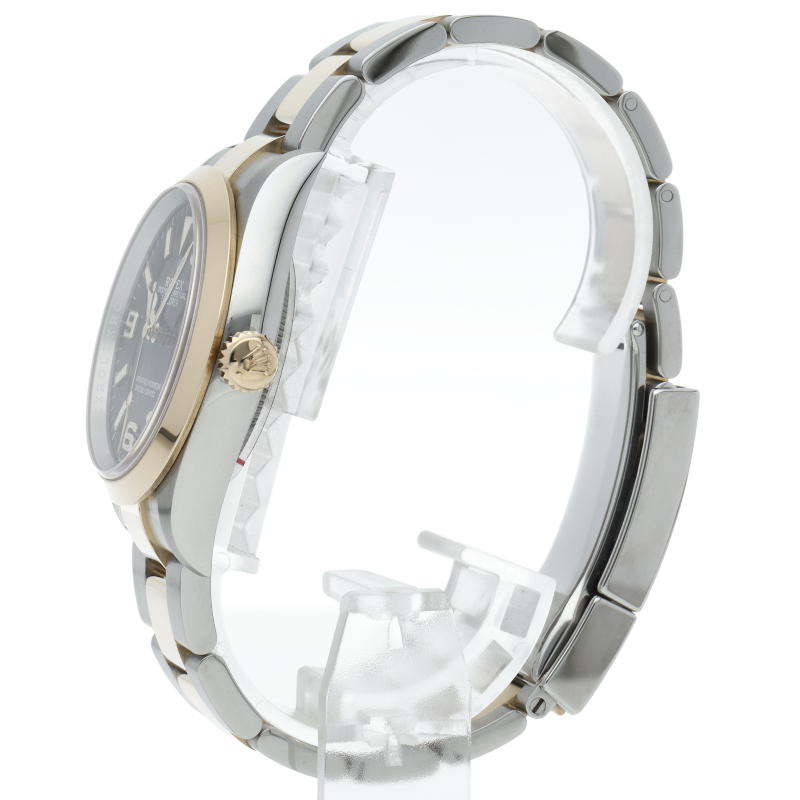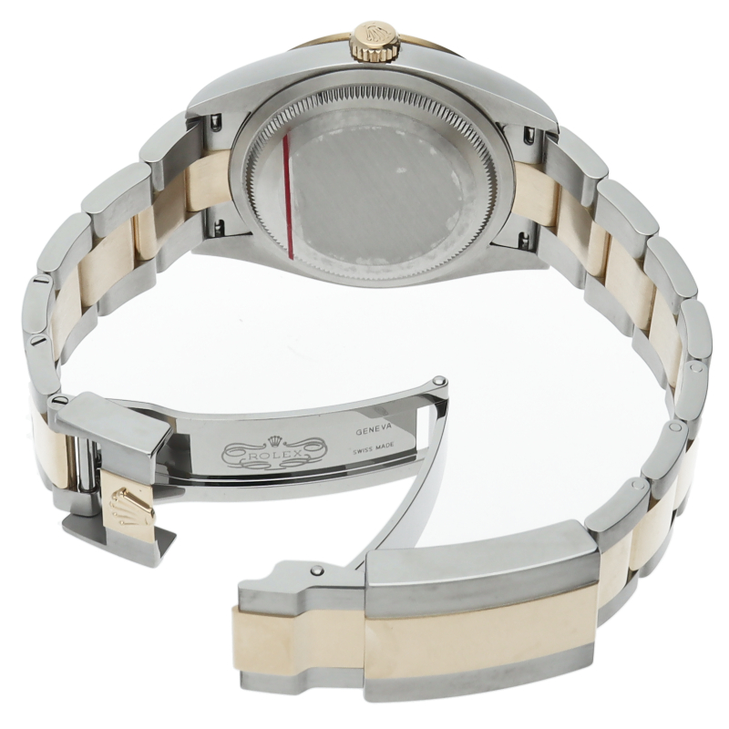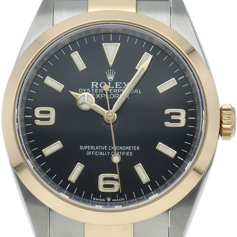 新たに加わったイエローゴールドとステンレスのコンビモデルのRef.124273も、124270と同様に36mmケースでの登場となりました。ムーブメントには、高いエネルギー効率と信頼性を両立させるロレックス特許のクロナジーエスケープメントを採用し、シリコン製ヘアスプリングと高性能パラフレックスショックアブソーバを装備した70時間パワーリザーブのキャリバー3230を搭載。