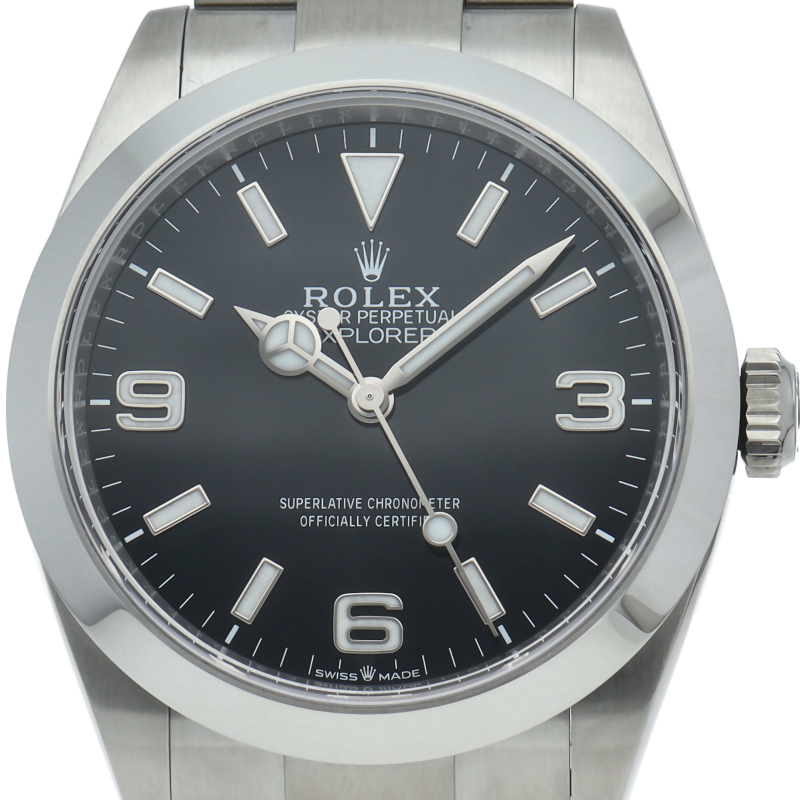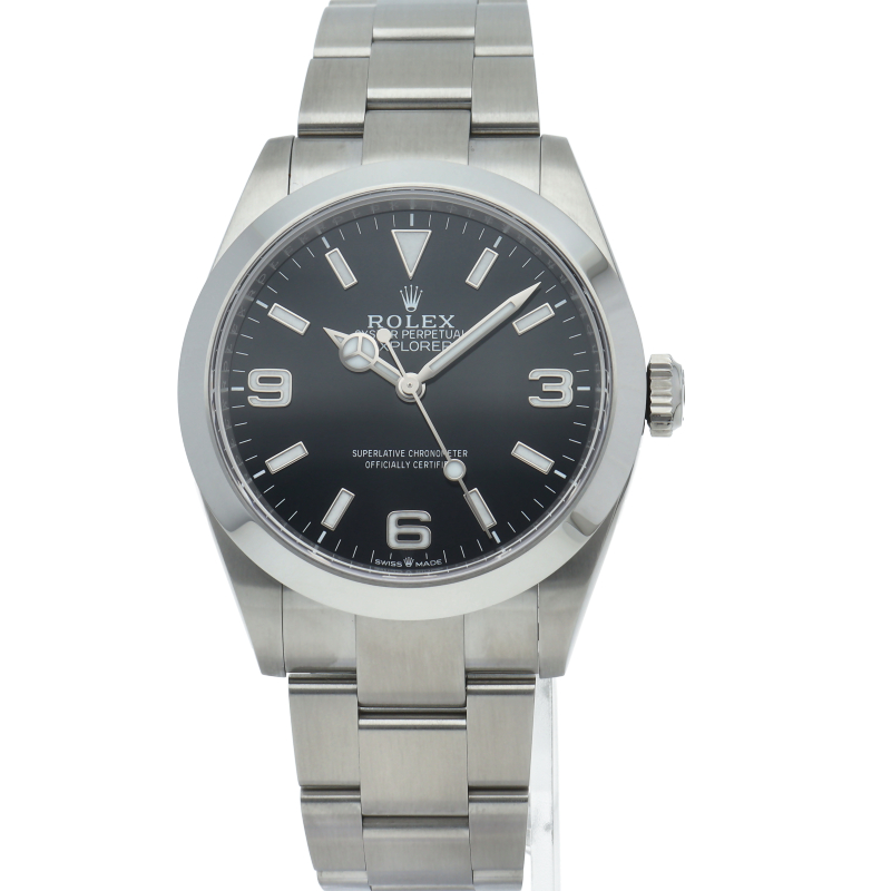 1953年に誕生した冒険家の為の時計、オイスターパーペチュアル エクスプローラー40。ムーブメントには、高いエネルギー効率と信頼性を両立させるロレックス特許のクロナジーエスケープメントを採用し、シリコン製ヘアスプリングと高性能パラフレックスショックアブソーバを装備した70時間パワーリザーブのキャリバー3230を搭載しています。2023年登場の新型モデル。