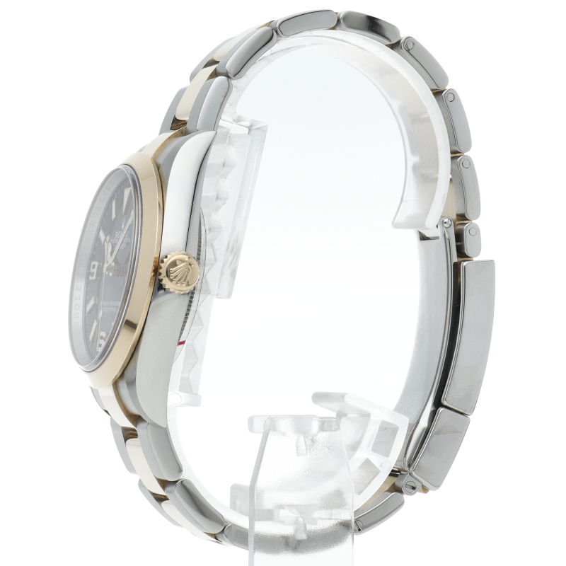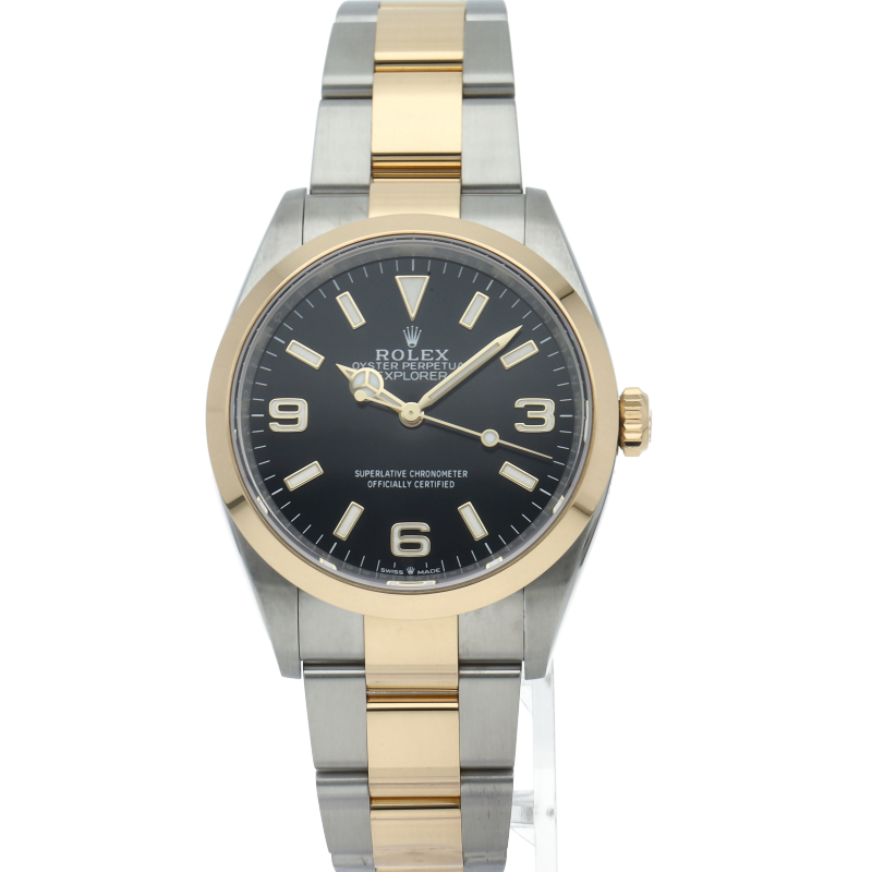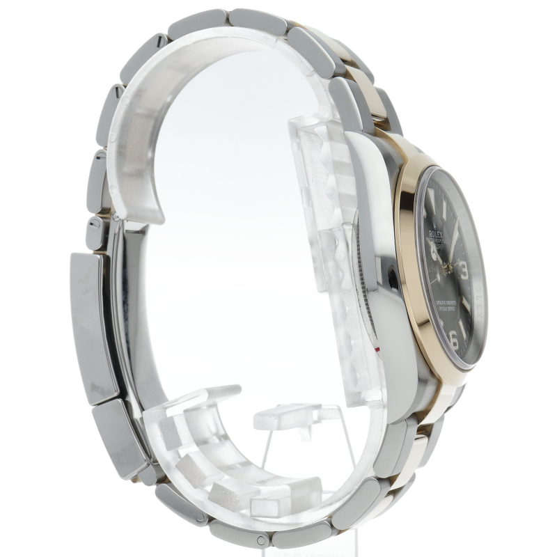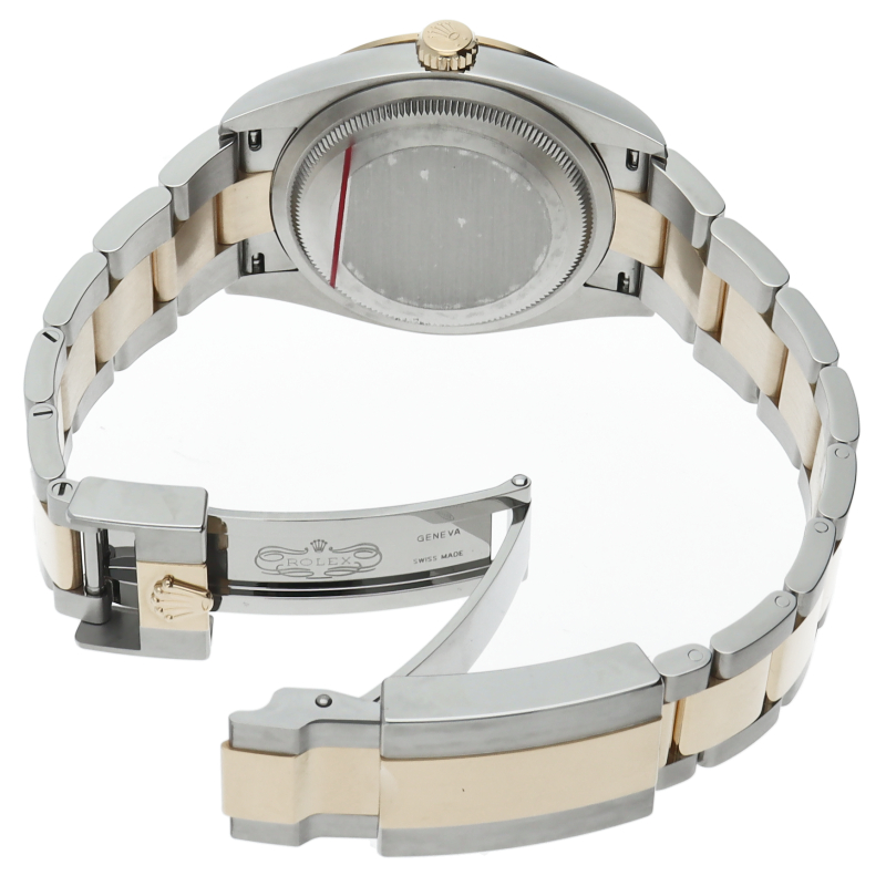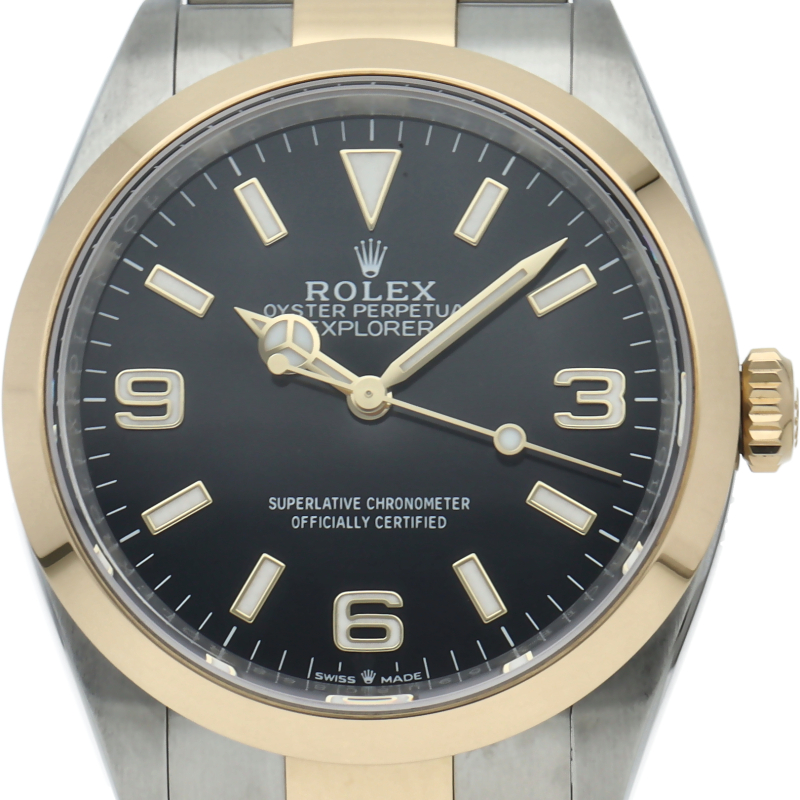 新たに加わったイエローゴールドとステンレスのコンビモデルのRef.124273も、124270と同様に36mmケースでの登場となりました。ムーブメントには、高いエネルギー効率と信頼性を両立させるロレックス特許のクロナジーエスケープメントを採用し、シリコン製ヘアスプリングと高性能パラフレックスショックアブソーバを装備した70時間パワーリザーブのキャリバー3230を搭載。