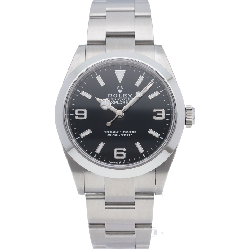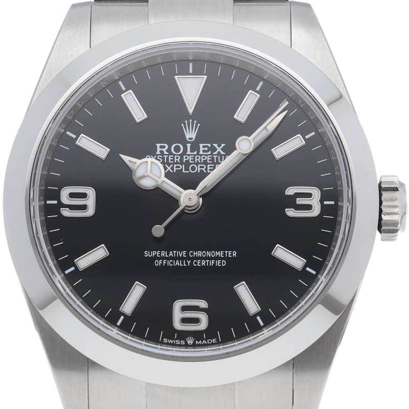 1953年に誕生した冒険家の為の時計、オイスターパーペチュアル エクスプローラー40。ムーブメントには、高いエネルギー効率と信頼性を両立させるロレックス特許のクロナジーエスケープメントを採用し、シリコン製ヘアスプリングと高性能パラフレックスショックアブソーバを装備した70時間パワーリザーブのキャリバー3230を搭載しています。2023年登場の新型モデル。