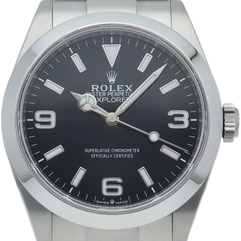 1953年に誕生した冒険家の為の時計、オイスターパーペチュアル エクスプローラー40。ムーブメントには、高いエネルギー効率と信頼性を両立させるロレックス特許のクロナジーエスケープメントを採用し、シリコン製ヘアスプリングと高性能パラフレックスショックアブソーバを装備した70時間パワーリザーブのキャリバー3230を搭載しています。2023年登場の新型モデル。