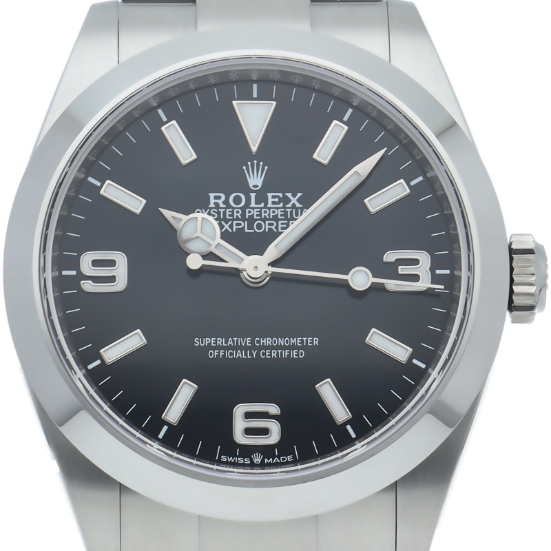 1953年に誕生した冒険家の為の時計、オイスターパーペチュアル エクスプローラー40。ムーブメントには、高いエネルギー効率と信頼性を両立させるロレックス特許のクロナジーエスケープメントを採用し、シリコン製ヘアスプリングと高性能パラフレックスショックアブソーバを装備した70時間パワーリザーブのキャリバー3230を搭載しています。2023年登場の新型モデル。