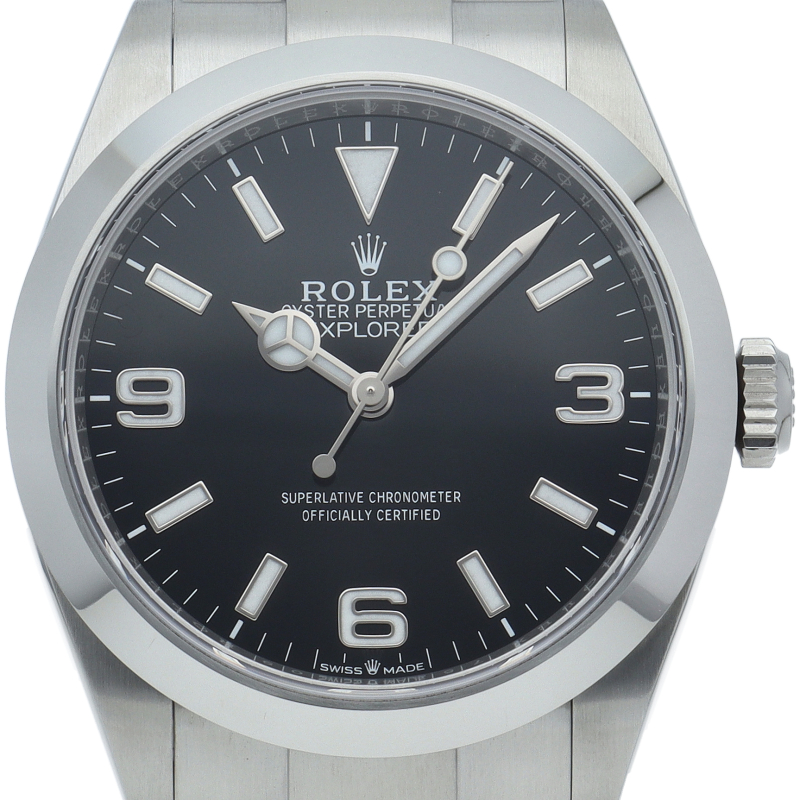 1953年に誕生した冒険家の為の時計、オイスターパーペチュアル エクスプローラー40。ムーブメントには、高いエネルギー効率と信頼性を両立させるロレックス特許のクロナジーエスケープメントを採用し、シリコン製ヘアスプリングと高性能パラフレックスショックアブソーバを装備した70時間パワーリザーブのキャリバー3230を搭載しています。2023年登場の新型モデル。