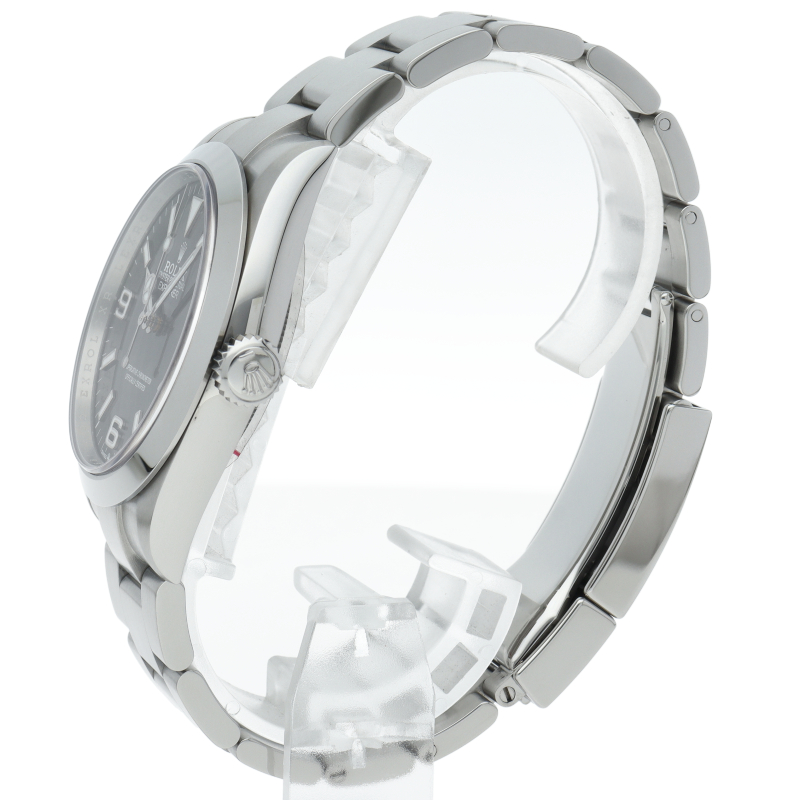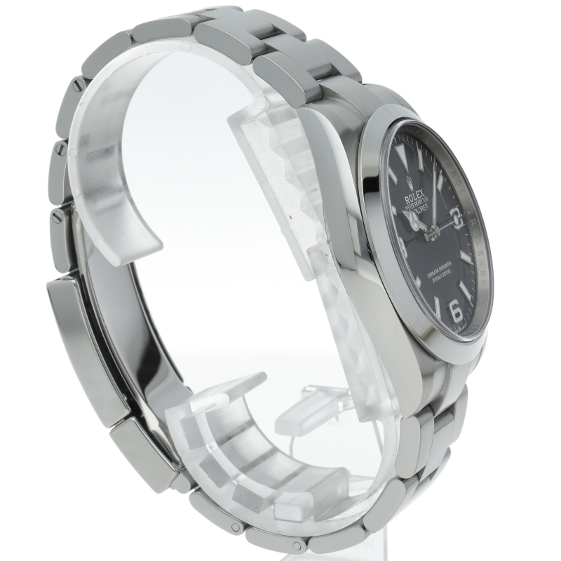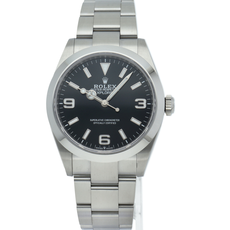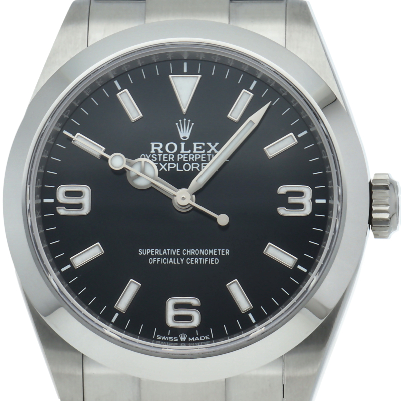 1953年に誕生した冒険家の為の時計、オイスターパーペチュアル エクスプローラー40。ムーブメントには、高いエネルギー効率と信頼性を両立させるロレックス特許のクロナジーエスケープメントを採用し、シリコン製ヘアスプリングと高性能パラフレックスショックアブソーバを装備した70時間パワーリザーブのキャリバー3230を搭載しています。2023年登場の新型モデル。