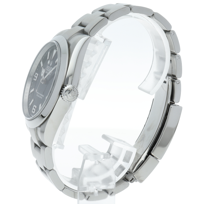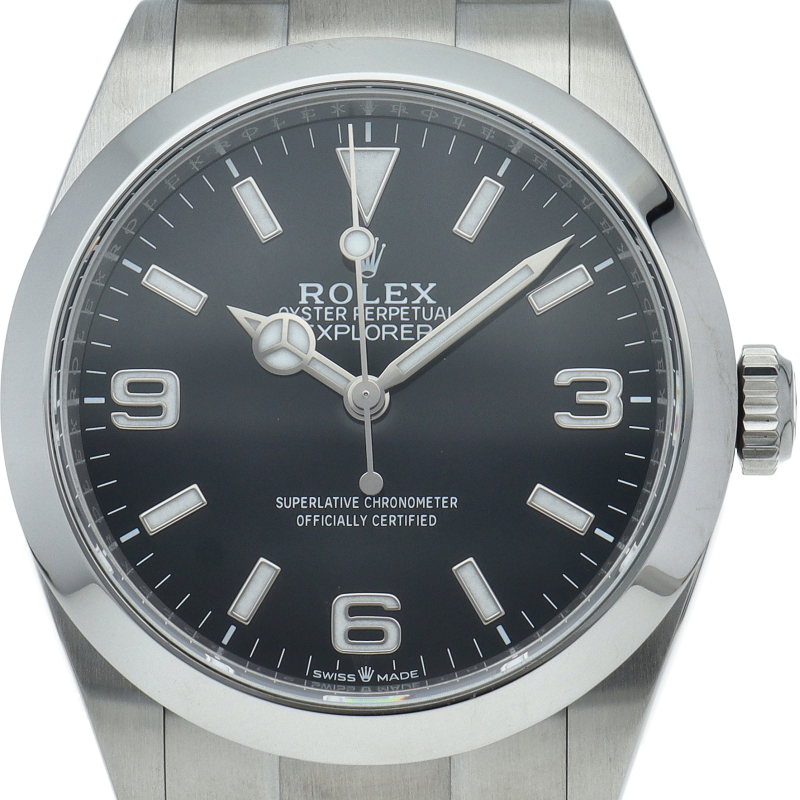 1953年に誕生した冒険家の為の時計、オイスターパーペチュアル エクスプローラー40。ムーブメントには、高いエネルギー効率と信頼性を両立させるロレックス特許のクロナジーエスケープメントを採用し、シリコン製ヘアスプリングと高性能パラフレックスショックアブソーバを装備した70時間パワーリザーブのキャリバー3230を搭載しています。2023年登場の新型モデル。