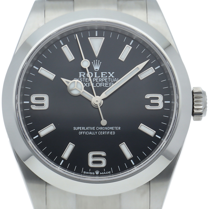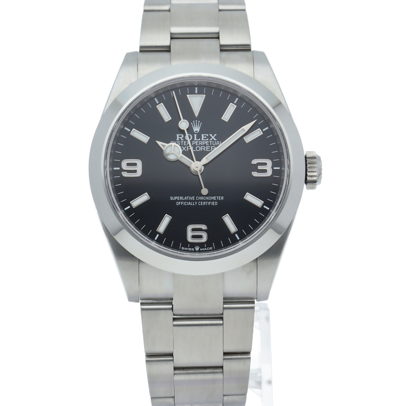 1953年に誕生した冒険家の為の時計、オイスターパーペチュアル エクスプローラー40。ムーブメントには、高いエネルギー効率と信頼性を両立させるロレックス特許のクロナジーエスケープメントを採用し、シリコン製ヘアスプリングと高性能パラフレックスショックアブソーバを装備した70時間パワーリザーブのキャリバー3230を搭載しています。2023年登場の新型モデル。