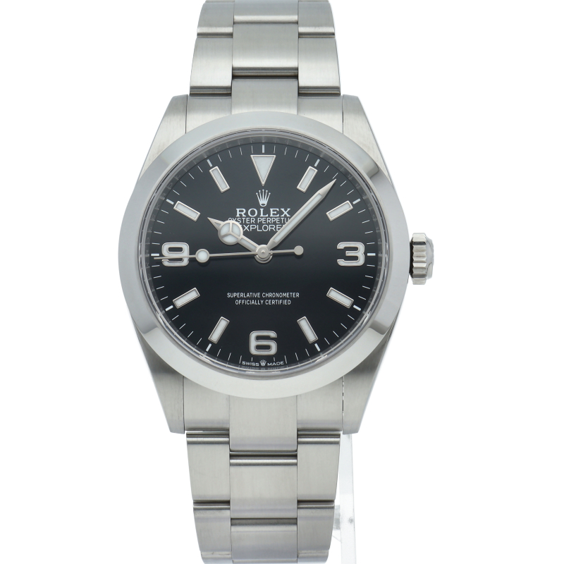 1953年に誕生した冒険家の為の時計、オイスターパーペチュアル エクスプローラー40。ムーブメントには、高いエネルギー効率と信頼性を両立させるロレックス特許のクロナジーエスケープメントを採用し、シリコン製ヘアスプリングと高性能パラフレックスショックアブソーバを装備した70時間パワーリザーブのキャリバー3230を搭載しています。2023年登場の新型モデル。