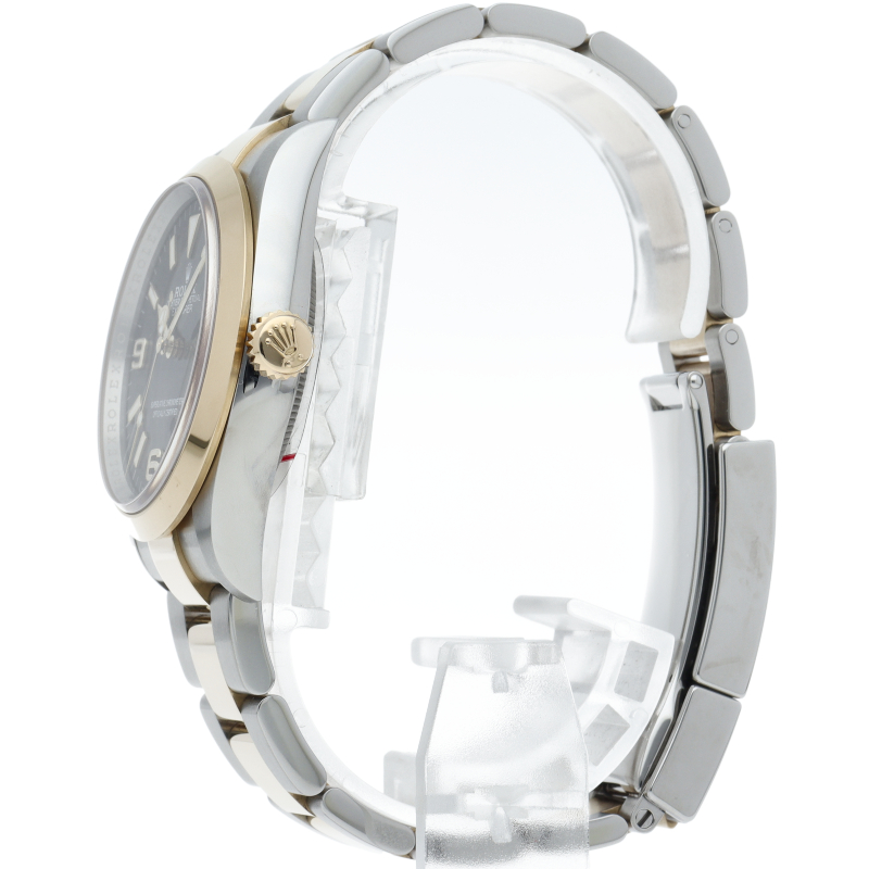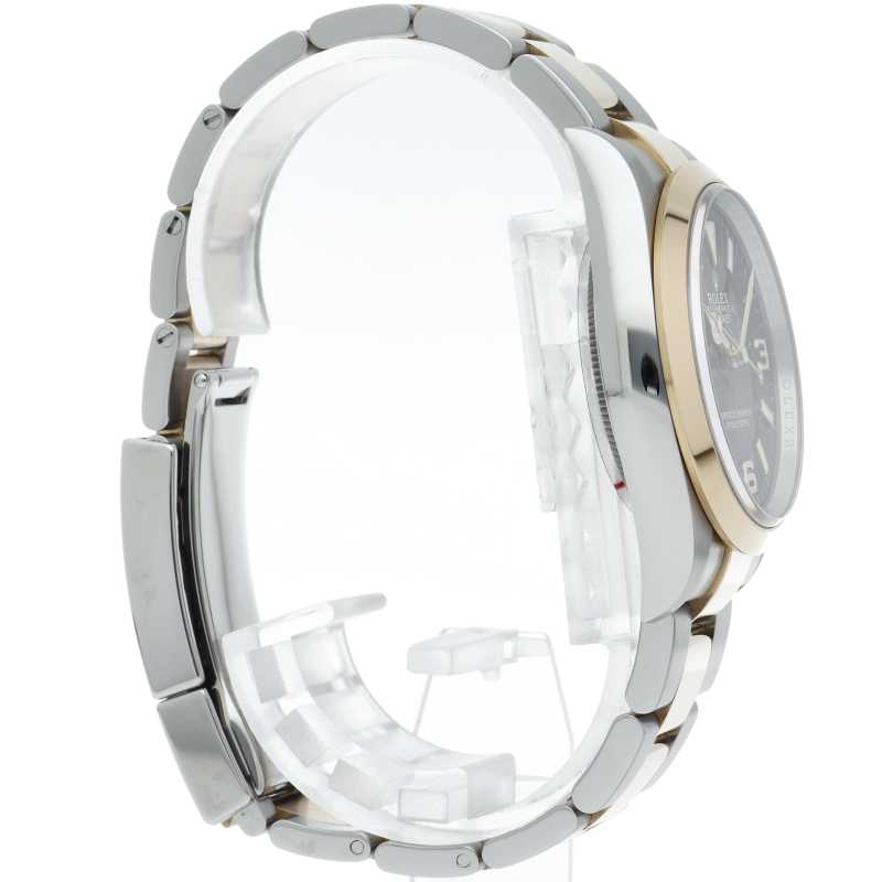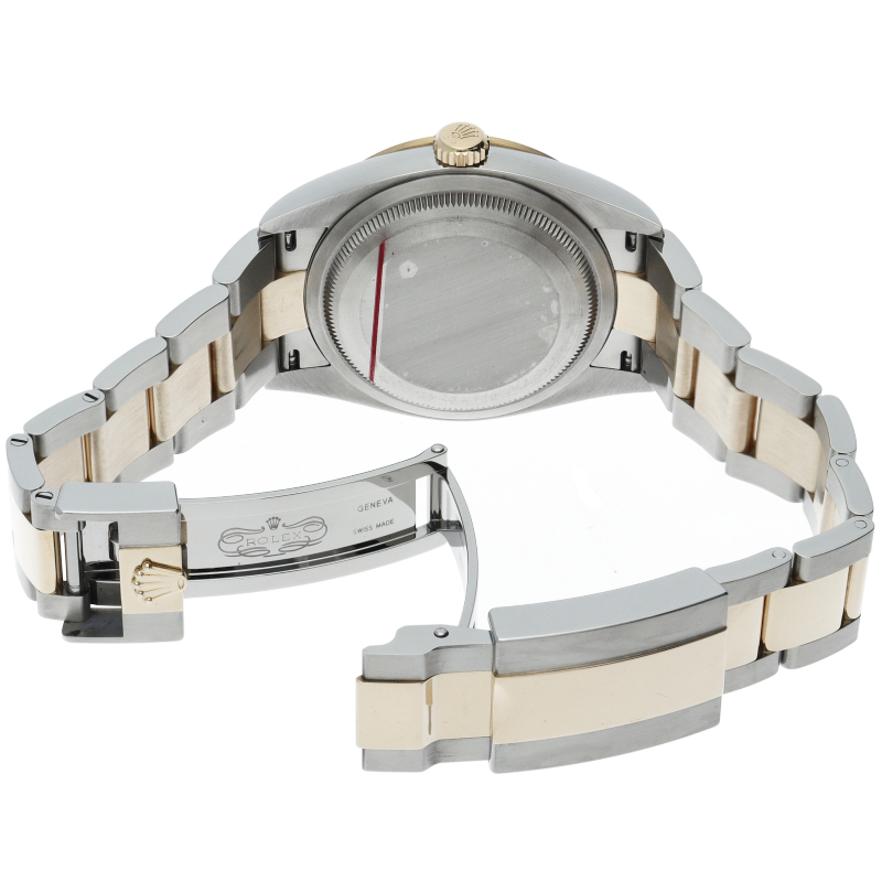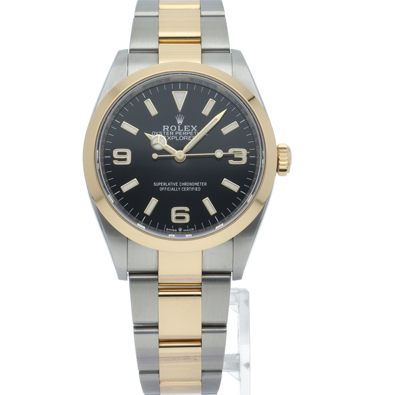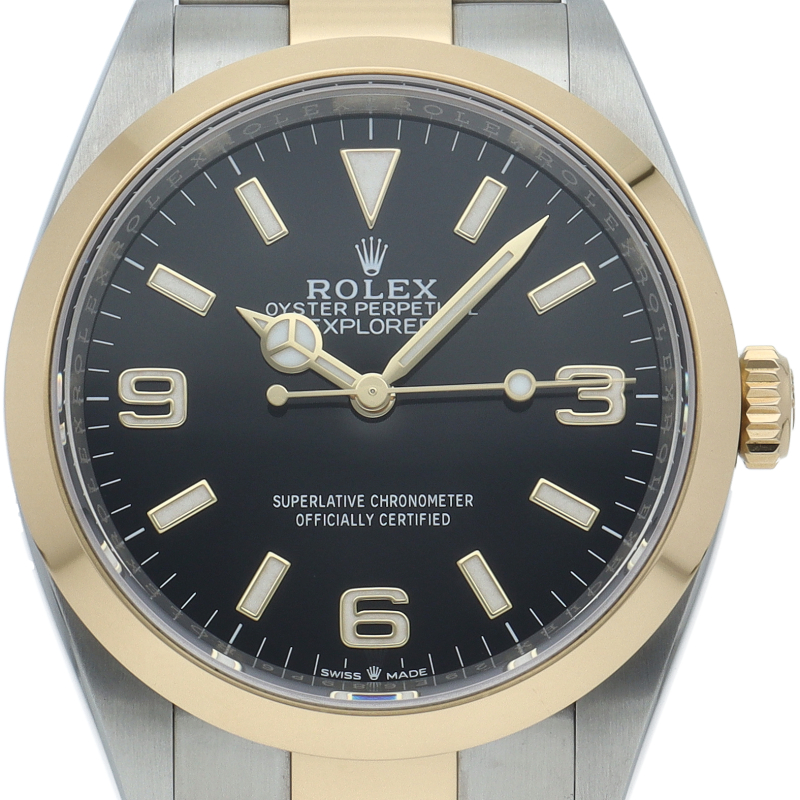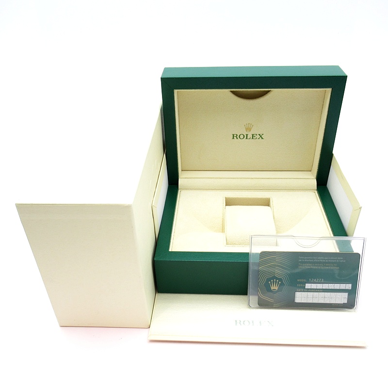 新たに加わったイエローゴールドとステンレスのコンビモデルのRef.124273も、124270と同様に36mmケースでの登場となりました。ムーブメントには、高いエネルギー効率と信頼性を両立させるロレックス特許のクロナジーエスケープメントを採用し、シリコン製ヘアスプリングと高性能パラフレックスショックアブソーバを装備した70時間パワーリザーブのキャリバー3230を搭載。