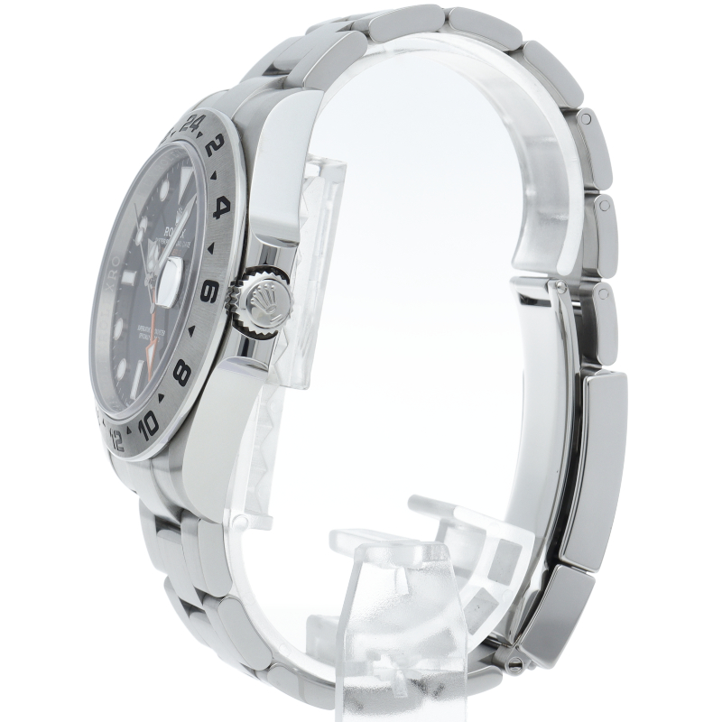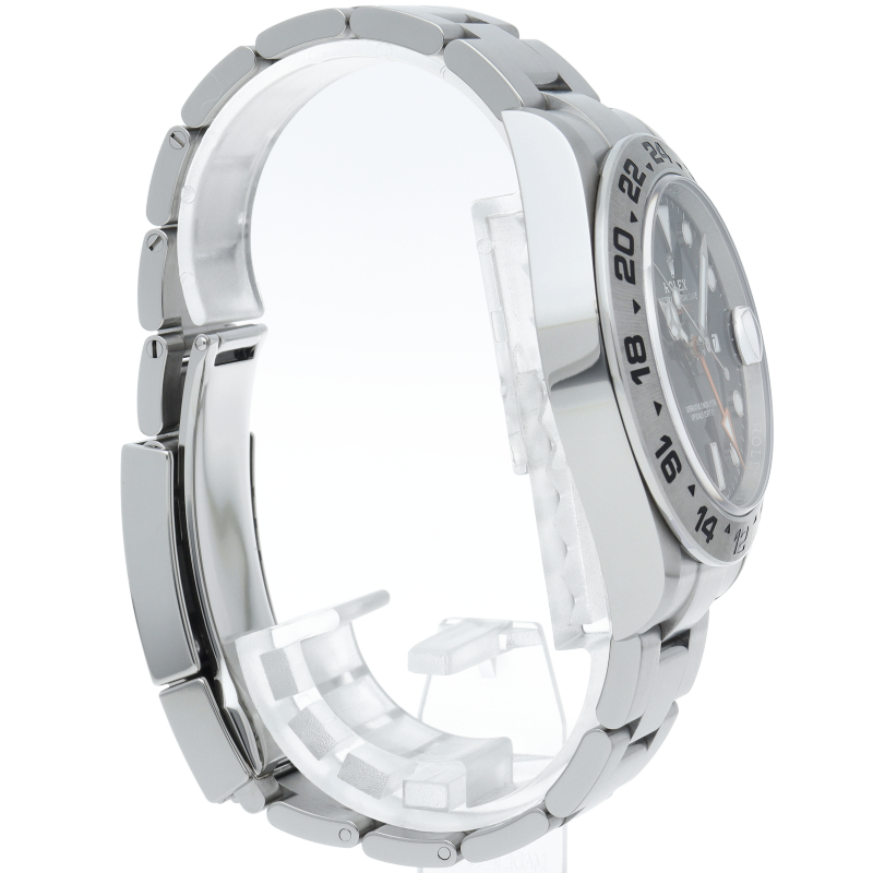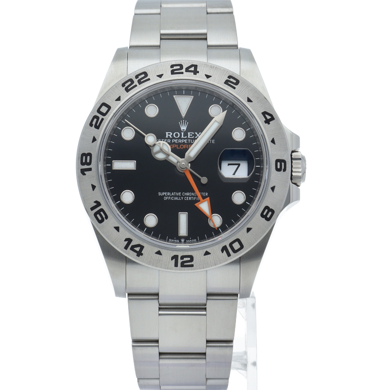 2021年に発表された216570の後継機、226570 オイスターパーペチュアル エクスプローラーII。文字盤中央から伸びるオレンジカラーのGMT針と24時間スケールが刻まれたベゼルを用いて第二時間帯も確認可能な探検家、登山家の為のプロフェッショナルウォッチです。