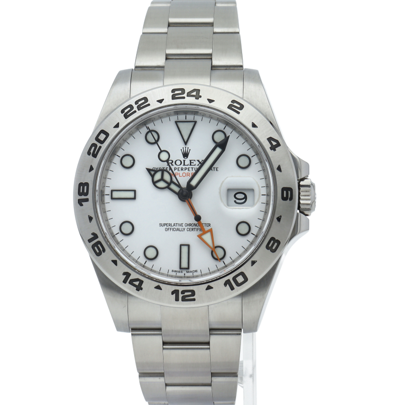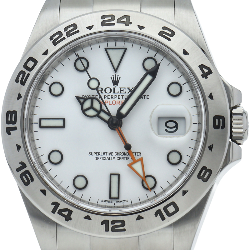 2011年にバーゼルで発表された新型「エクスプローラー2」。ケースサイズは42ミリにアップされ初代エクスプローラー2を思わせる24時間オレンジ針が特徴的な1本。