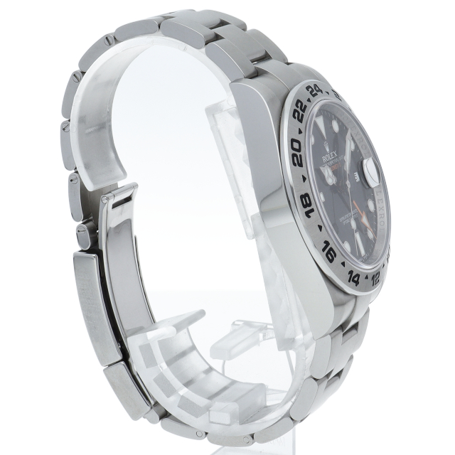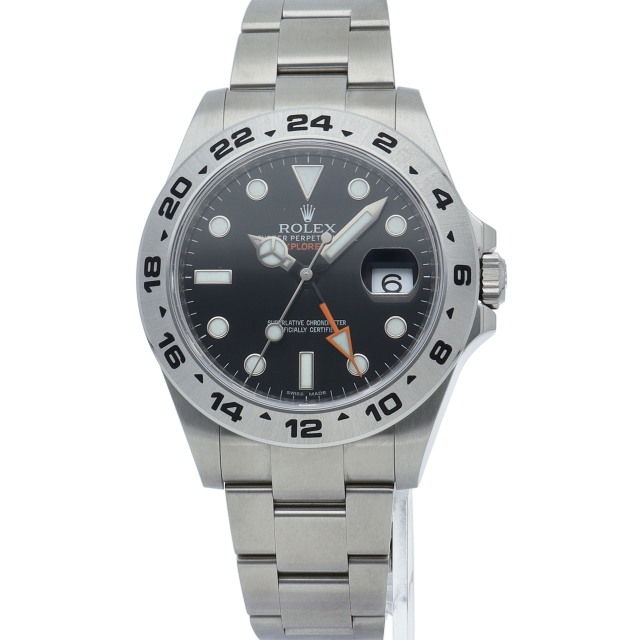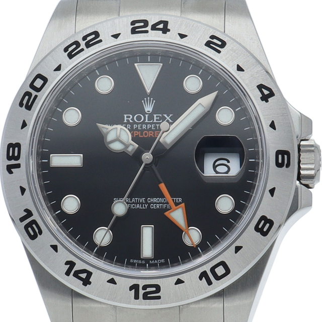 2011年にバーゼルで発表された新型「エクスプローラー2」。ケースサイズは42ミリにアップされ初代エクスプローラー2を思わせる24時間オレンジ針が特徴的な1本。