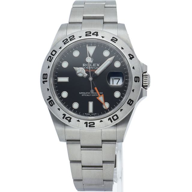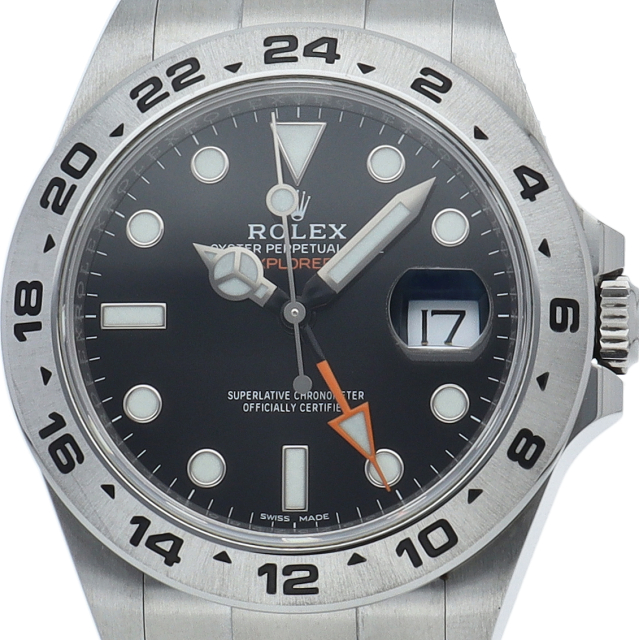 2011年にバーゼルで発表された新型「エクスプローラー2」。ケースサイズは42ミリにアップされ初代エクスプローラー2を思わせる24時間オレンジ針が特徴的な1本。