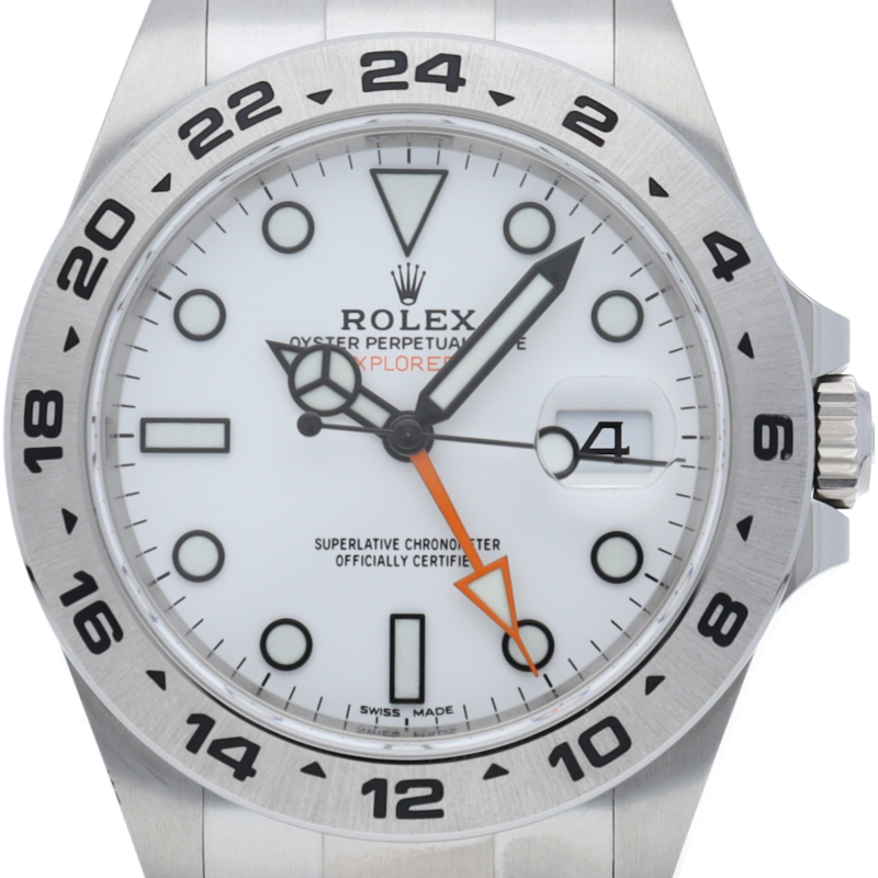 2011年にバーゼルで発表された「エクスプローラー2」。ケースサイズは42ミリにアップされ初代エクスプローラー2を思わせる24時間オレンジ針が特徴的な1本。すでに生産終了にともない相場が楽しみな1本です。