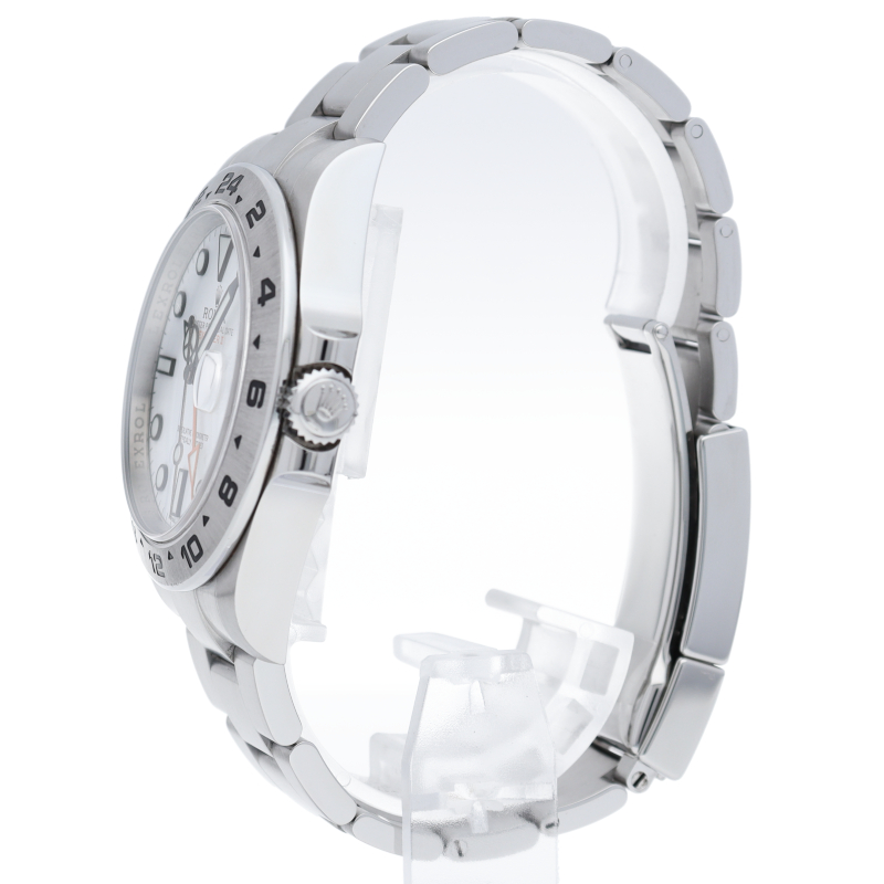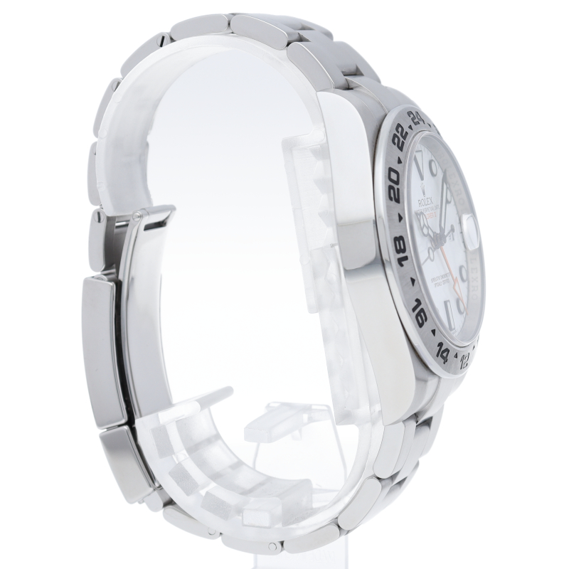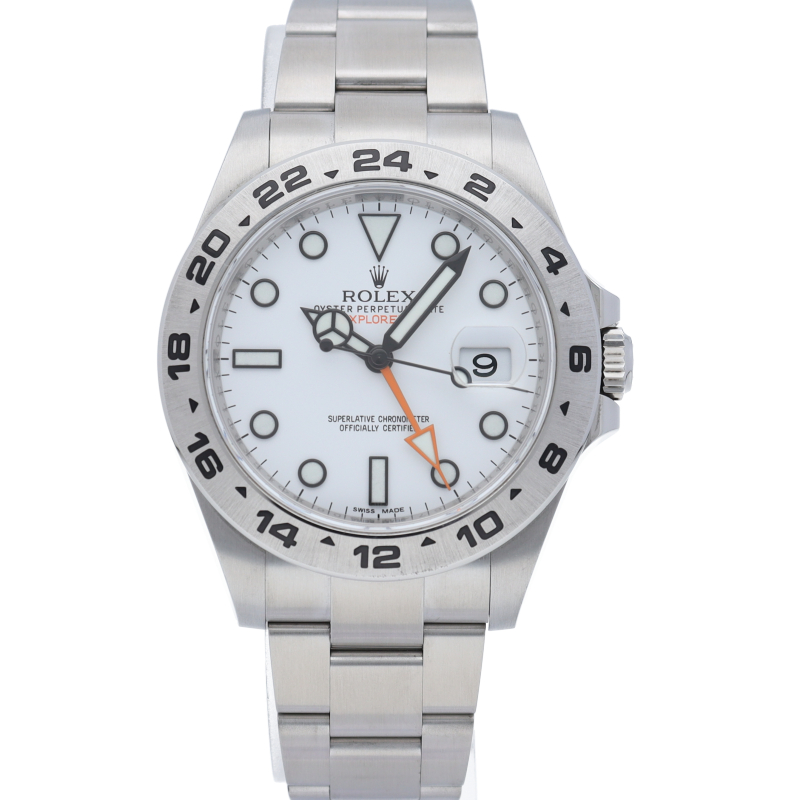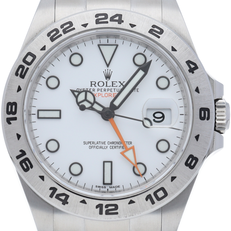 2011年にバーゼルで発表された「エクスプローラー2」。ケースサイズは42ミリにアップされ初代エクスプローラー2を思わせる24時間オレンジ針が特徴的な1本。すでに生産終了にともない相場が楽しみな1本です。