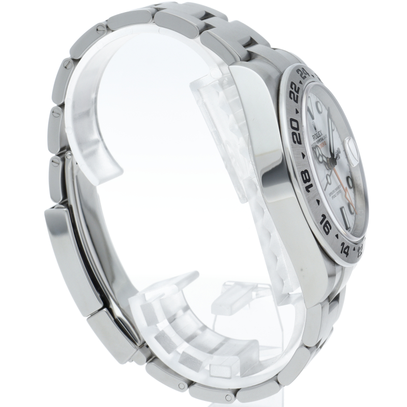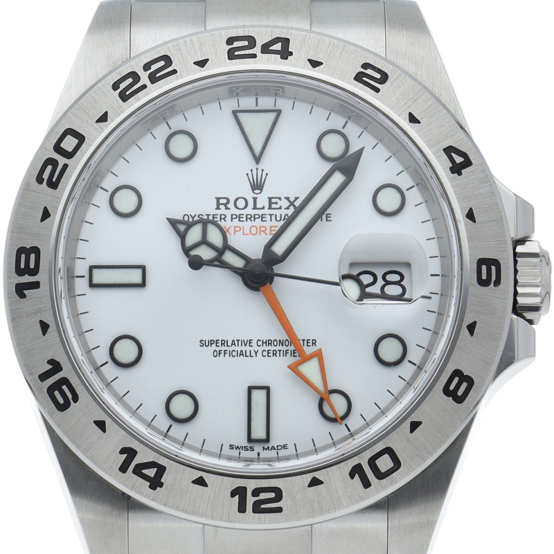 2011年にバーゼルで発表された「エクスプローラー2」。ケースサイズは42ミリにアップされ初代エクスプローラー2を思わせる24時間オレンジ針が特徴的な1本。すでに生産終了にともない相場が楽しみな1本です。