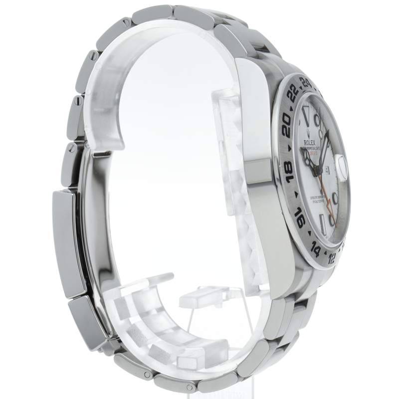 2011年にバーゼルで発表された「エクスプローラー2」。ケースサイズは42ミリにアップされ初代エクスプローラー2を思わせる24時間オレンジ針が特徴的な1本。すでに生産終了にともない相場が楽しみな1本です。