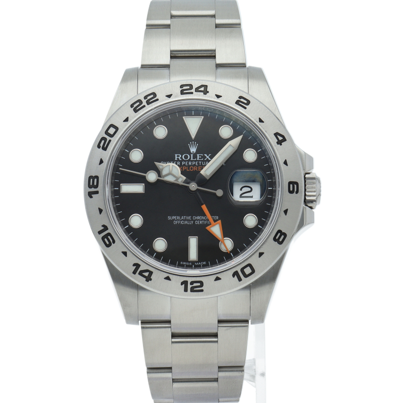 2011年にバーゼルで発表された新型「エクスプローラー2」。ケースサイズは42ミリにアップされ初代エクスプローラー2を思わせる24時間オレンジ針が特徴的な1本。
