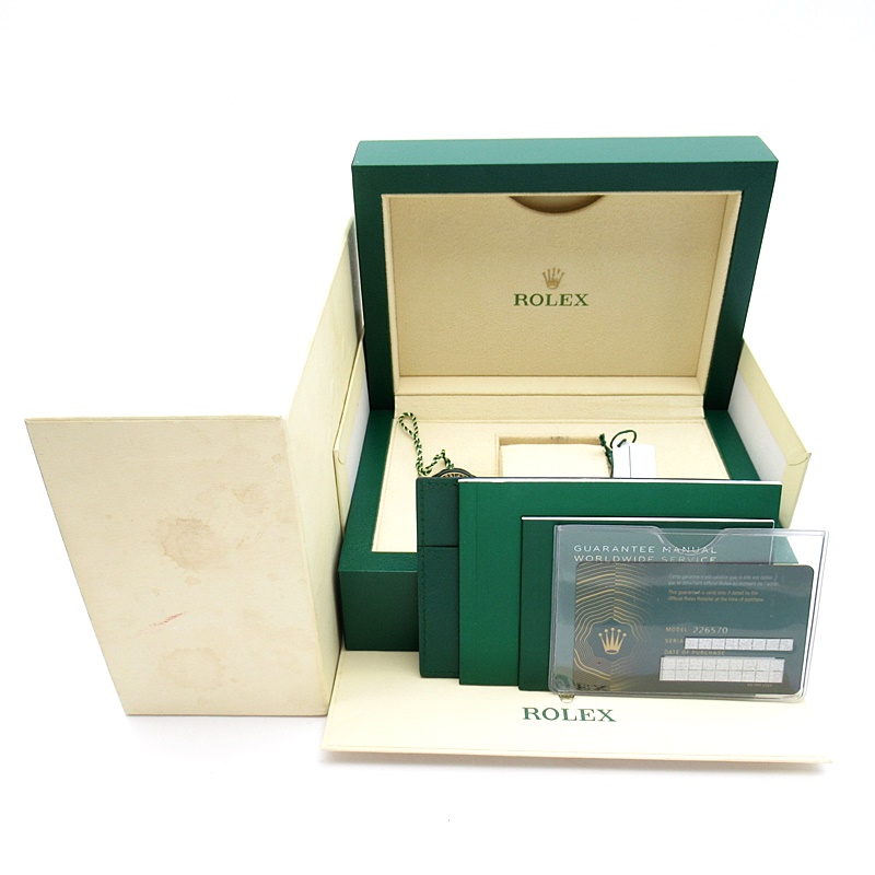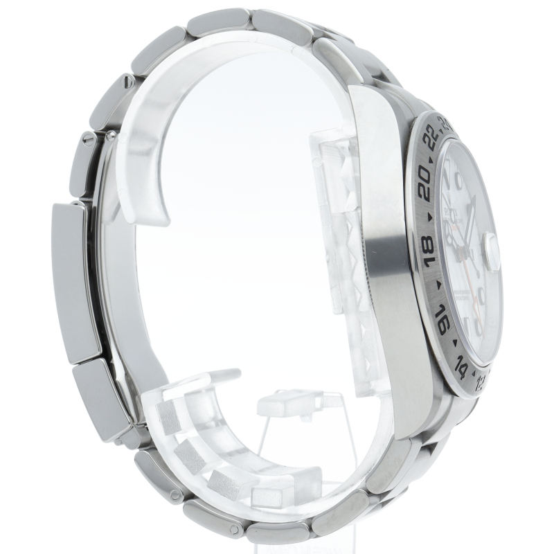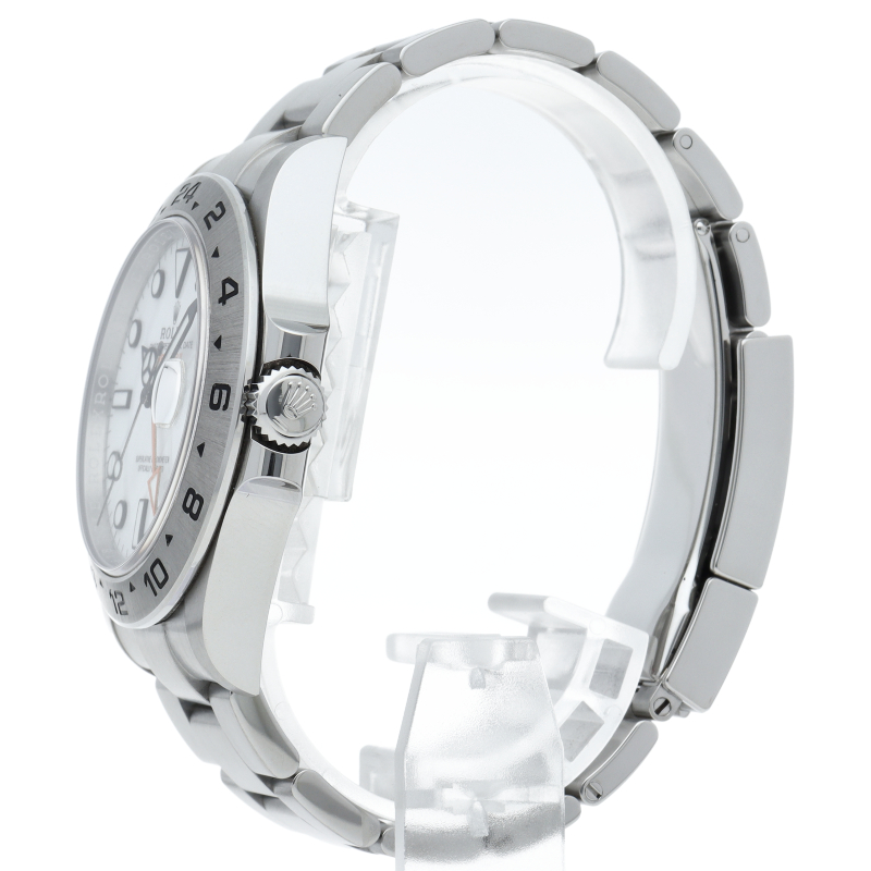 2021年に発表された216570の後継機、【226570 オイスターパーペチュアル エクスプローラーⅡ。文字盤中央から伸びるオレンジカラーのGMT針と24時間スケールが刻まれたベゼルを用いて第二時間帯も確認可能な探検家、登山家の為のプロフェッショナルウォッチです。