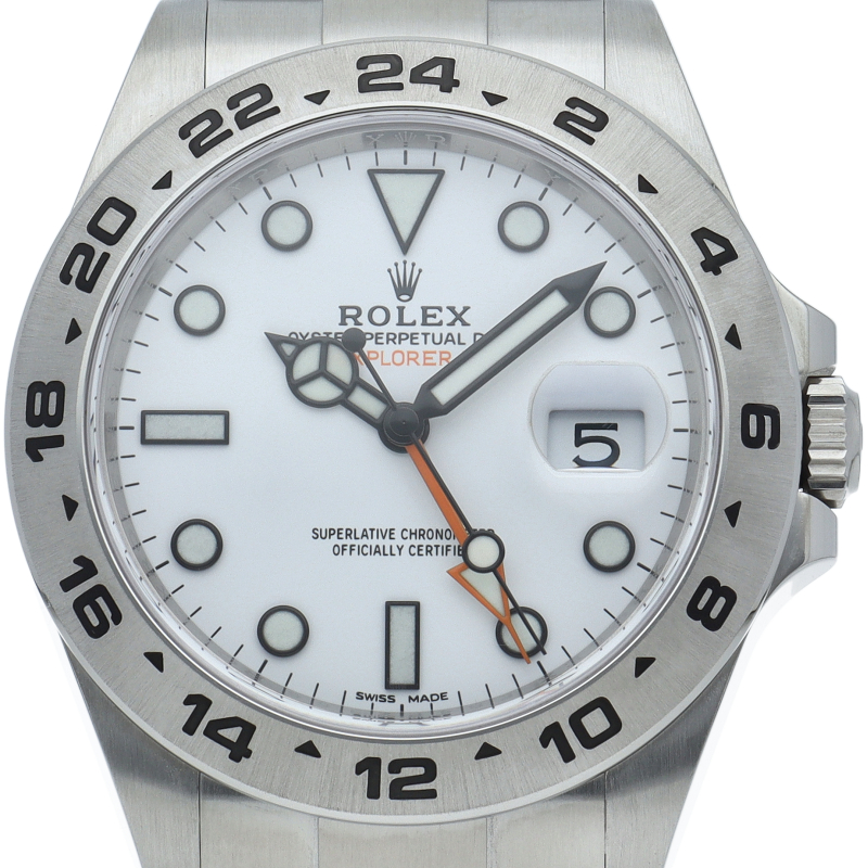 2011年にバーゼルで発表された新型「エクスプローラー2」。ケースサイズは42ミリにアップされ初代エクスプローラー2を思わせる24時間オレンジ針が特徴的な1本。