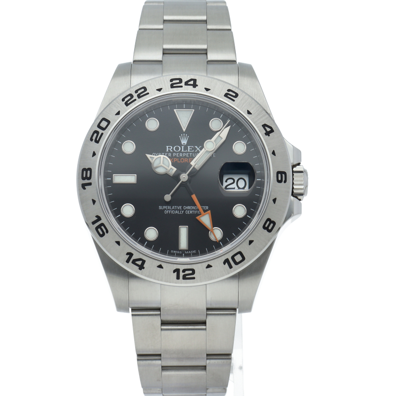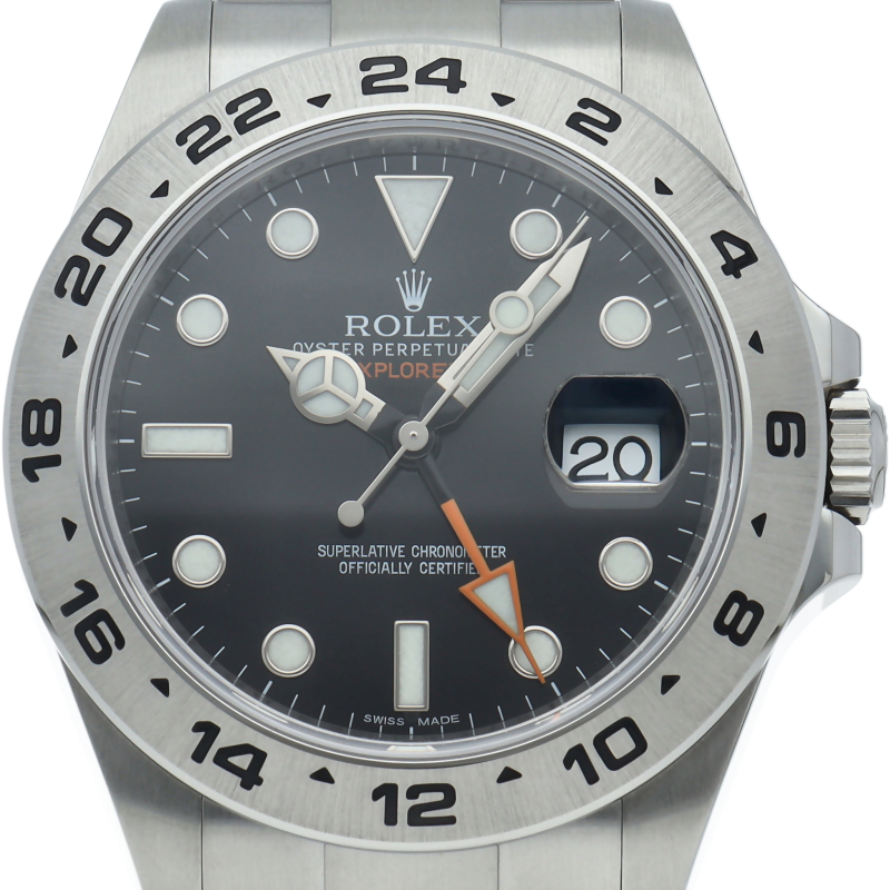 2011年にバーゼルで発表された新型「エクスプローラー2」。ケースサイズは42ミリにアップされ初代エクスプローラー2を思わせる24時間オレンジ針が特徴的な1本。
