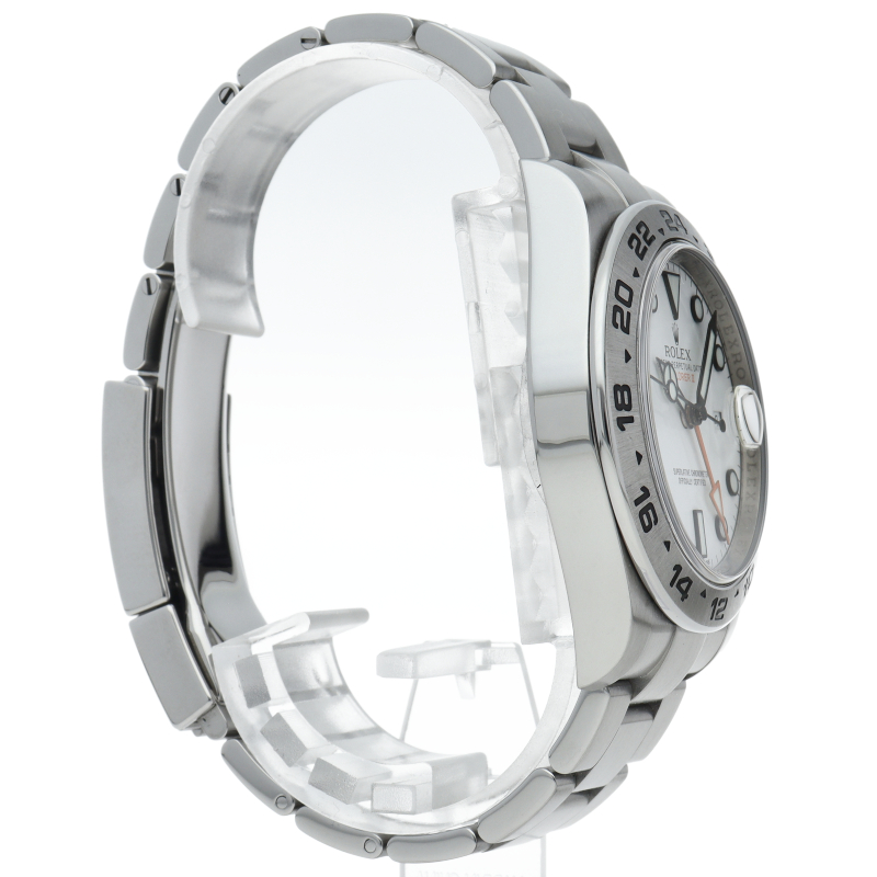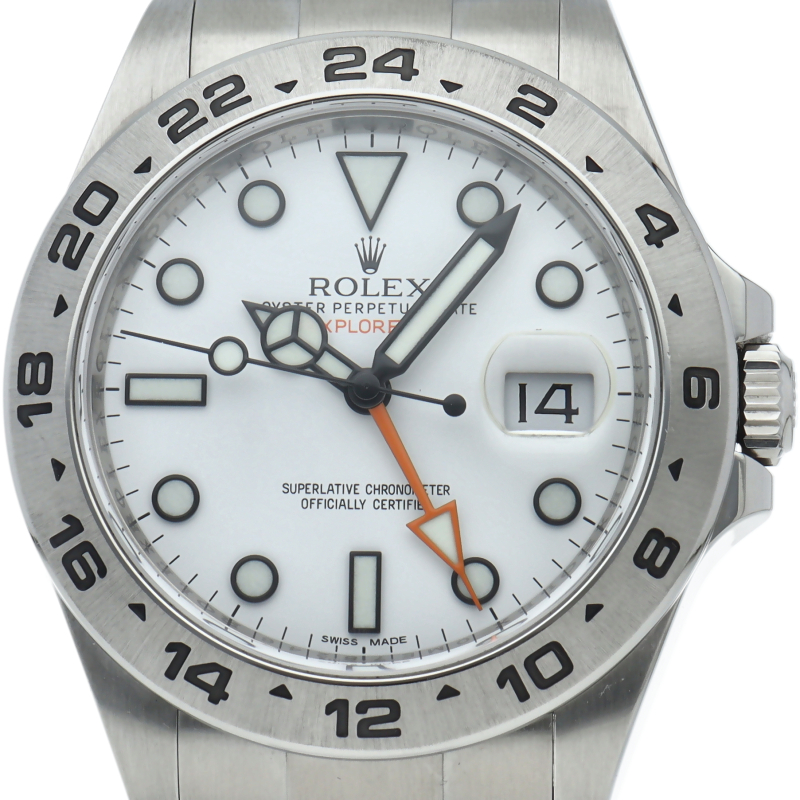 2011年にバーゼルで発表された新型「エクスプローラー2」。ケースサイズは42ミリにアップされ初代エクスプローラー2を思わせる24時間オレンジ針が特徴的な1本。